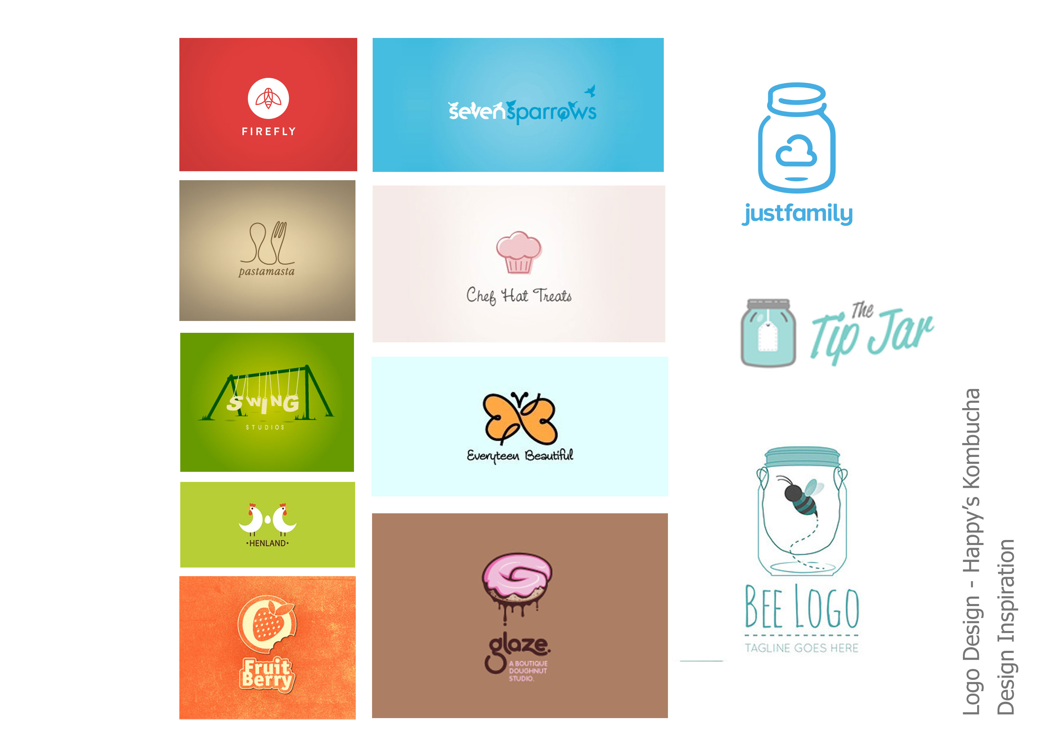 "Happy" in my head is a jar mascot for the company. He is a happy jar with a cloth hat (like the jars look when brewing kombucha). He is happy because of the health benefit of kombucha. I would like to see this as a concept as well as whatever your creative minds come up with!