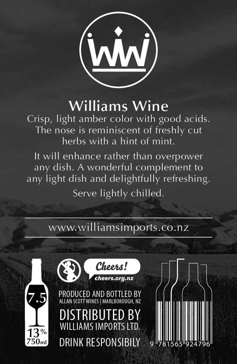 We are still unsure of whether to use "Williams Wine" or "Williams" as the brand for the label, if you could submit designs based around the two names we would appreciate that.