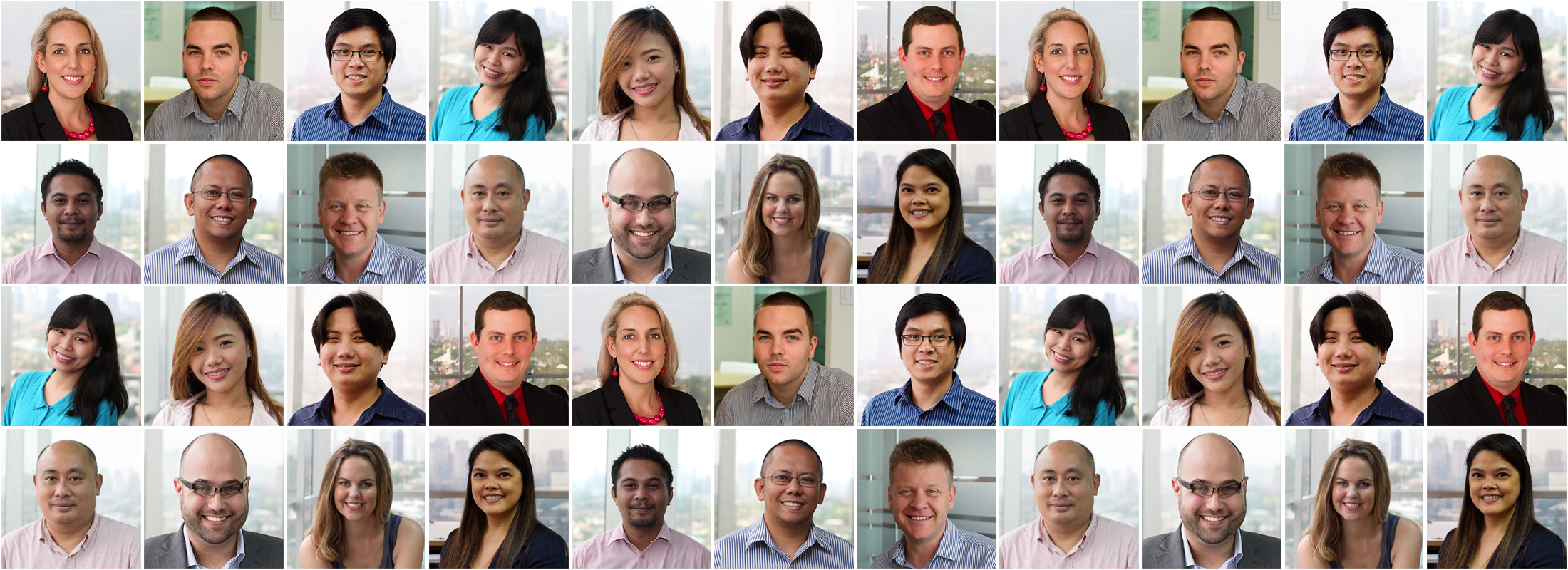 We often use a staff faces grid in our marketing material like this... http://readyoffshore.com.au/Technology%20for%20Global%20Teams%20Whitepaper.pdf