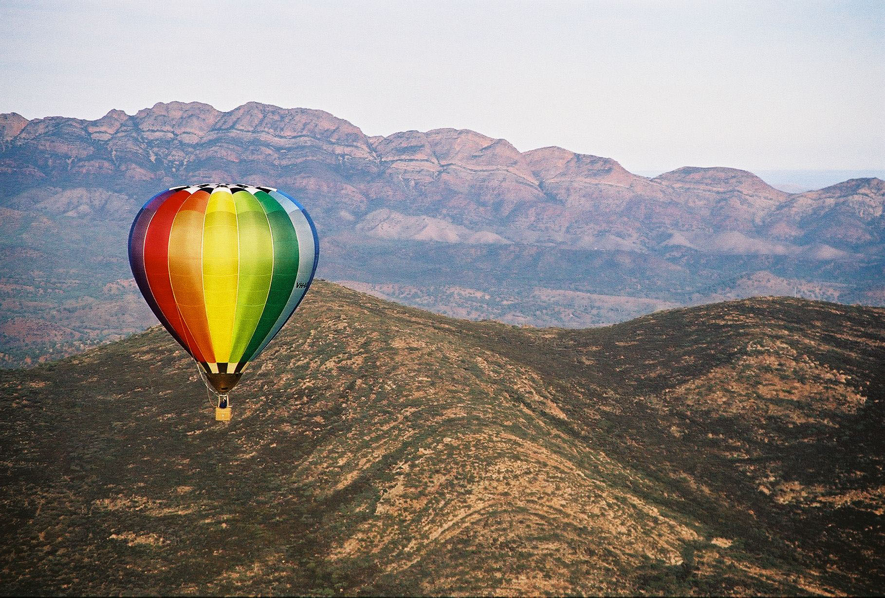 We need a colourful flyer to promote our passenger balloon flight experience "High Country Ballooning". The vertical DL 100 x 210mm flyer will sit in a brochure display with other DL brochures so the top 60-80mm is visible and must invite attention. We want to feature the "kanketsu.jpg" photo or a crop of it which is included in the uploaded files - this is the photo with the rugged mountain range in the background.
