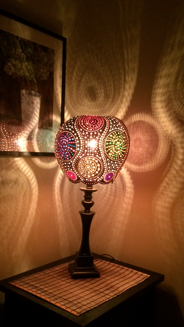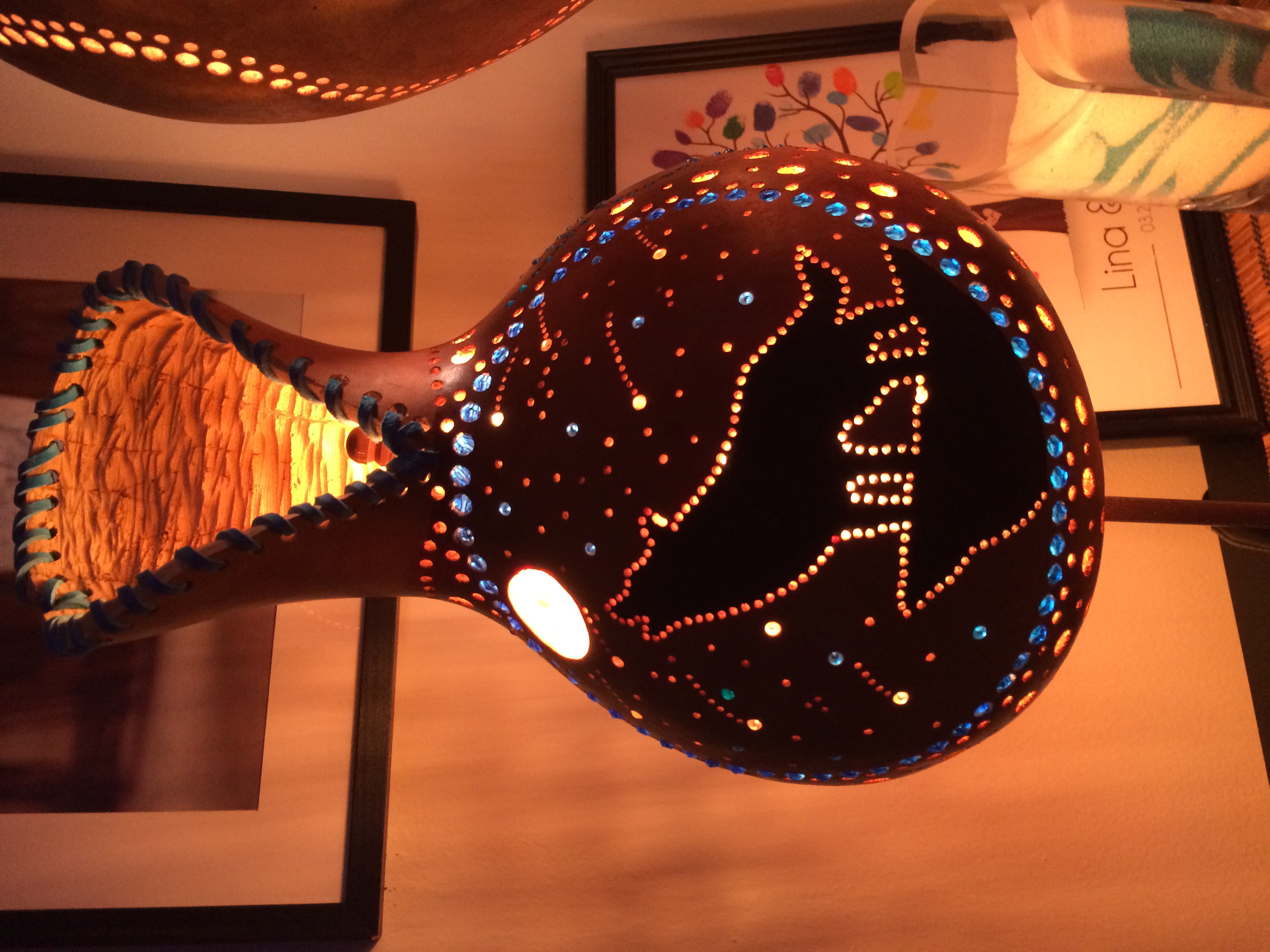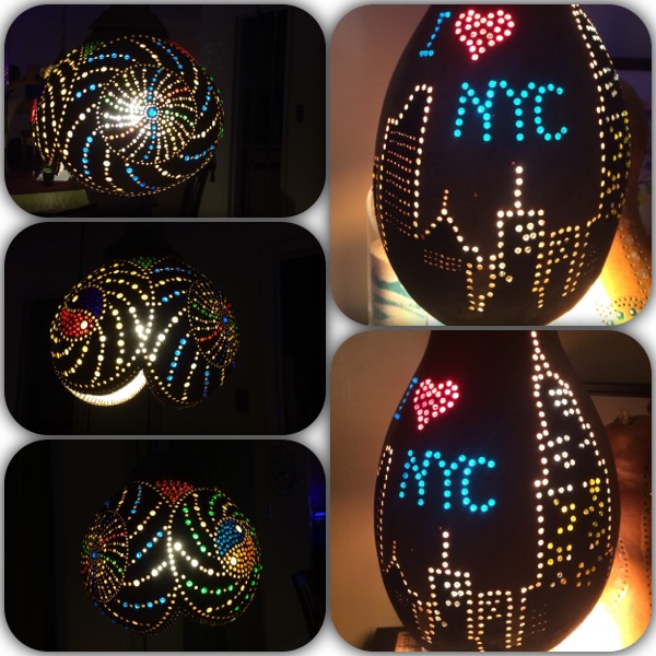 NYC turkish gourd lamps, handmade with special dry gourds and turkish beads