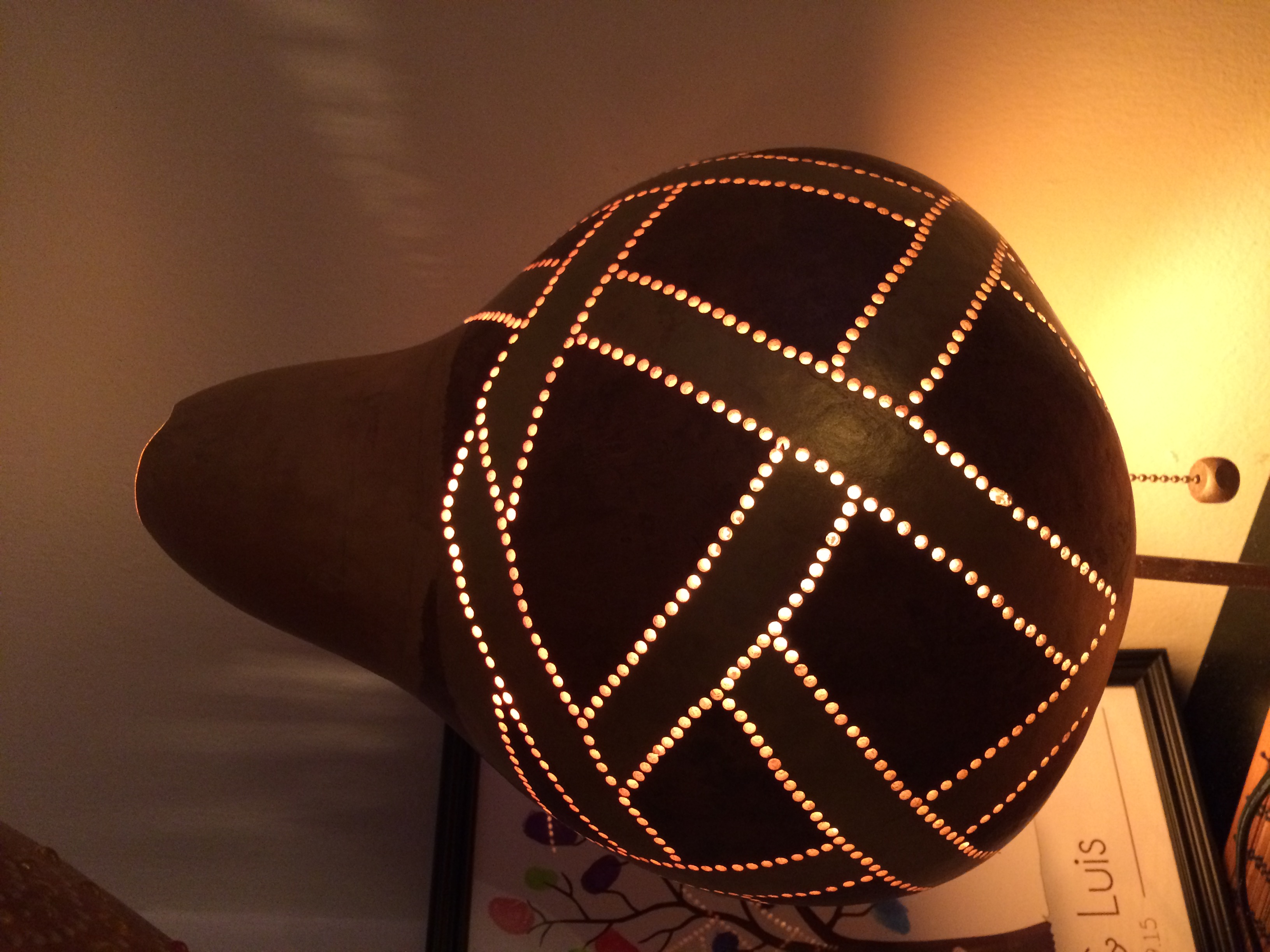 We made custom and creative designs for turkish gourd Lamps, is a new proyect in New York City, each lamp is unique, that means, we don't repeat designs ever!!! We use kettle dry gourds, looks like a big Pear (fruit ) and special turkish light beads.. We made table lamps, floor lamps ang hanging lamps