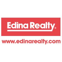- white Edina Realty letters with a red box