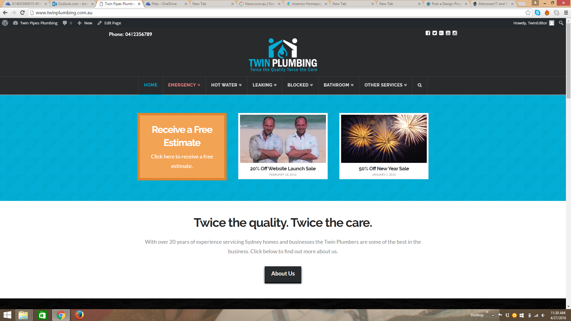 Website Landing Page Twin Plumbing