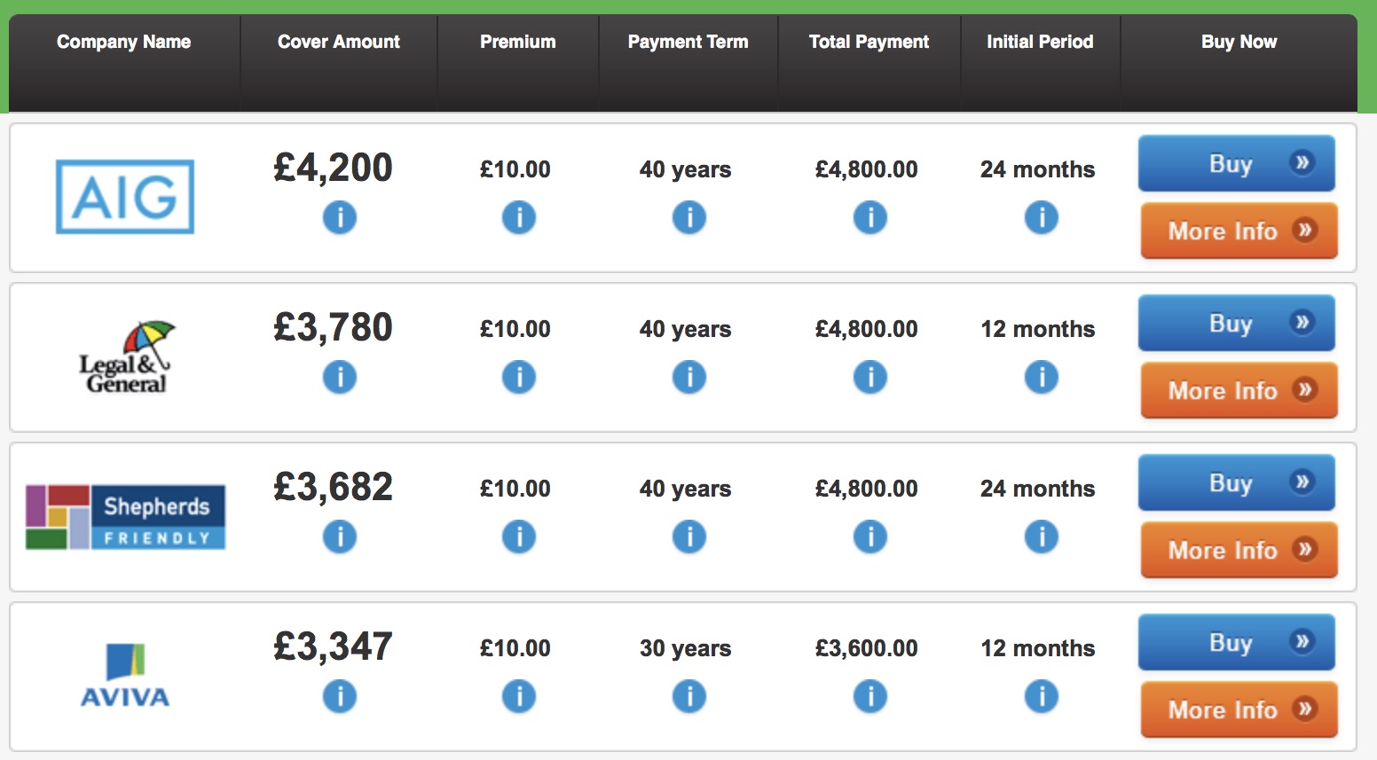www.over50splan.com provides a method of comparing guaranteed life cover for consumers aged over 50. The approach we are initially looking to deploy is a simple landing page that provides the user with high level information about over 50s plans and allows them to see which provider is offering the best deal by ranking providers in a table. This will compare costs / core features in the same way as shown in the attached file.