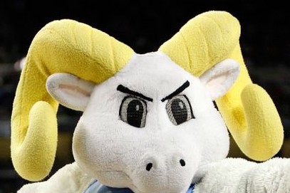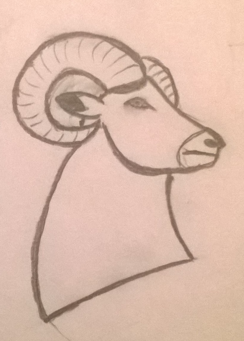 In the ram logo I would like the chest and head to be the light blue from the listed palette, the area around the nose and mouth should be white, the horns should be flat gray from the included palette, and the outlines should be black.