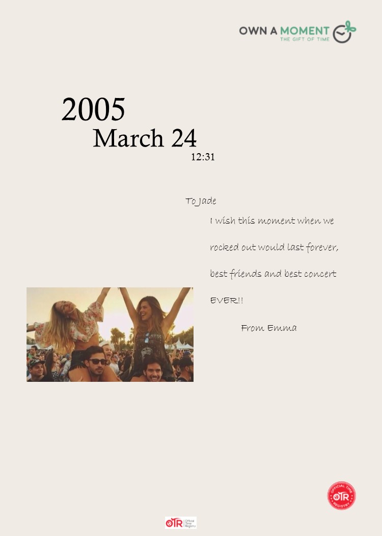 I need a certificate designing that is to celebrate somebodies memory, basically the concept is a certificate that has a date and time that is changeable, to be included year, month, day, hour, minute (Written or as numbers) a photo that could potentially be of anything so this will reflect how the certificate boarder/background etc is going to look as it could be wedding, anniversary, birth, holiday, concert …….etc, also included is a text box where the person will dedicate or write a short piece about this memory and a from and to field. Please see attached.