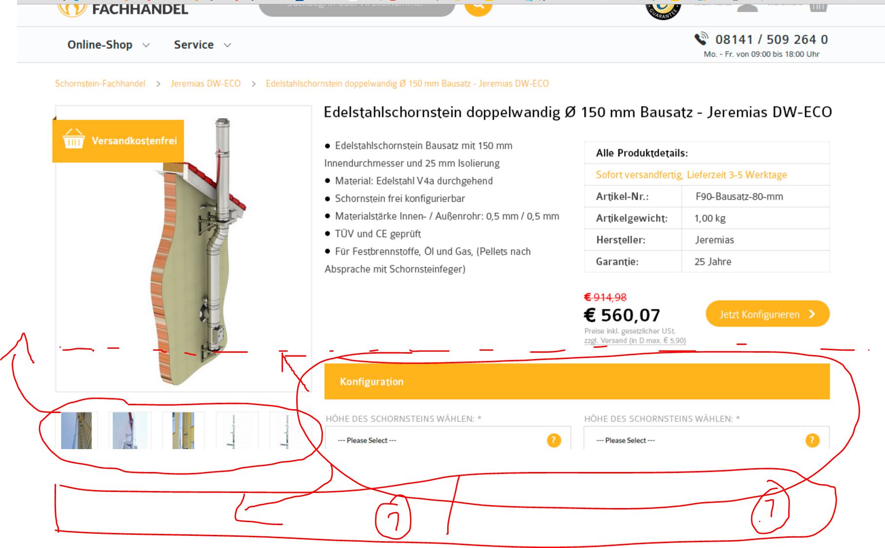 Our current detail page has to be redesigned. The trouble is, did on a small screen (13 "for example) the drop down menu-are not visible. So the goal is to organize the content i seeking a way, so the 8 drop down menues are visible without scrolling. Please make your . We are looking forward suggestion to see it Here is the currnet page:. https://schornstein-fachhandel.de/jeremias-dw-eco/edelstahlkamin-doppelwandig-dw-eco-150mm/ update: I was talking about the 10 -11 drop down menues at the lower side of the product page All which is overwritten with "configuration". See the attached picture. The information in the yellow marker frame shoulderstand be reorganized so it is visible on a 13 "1366x786 screen.