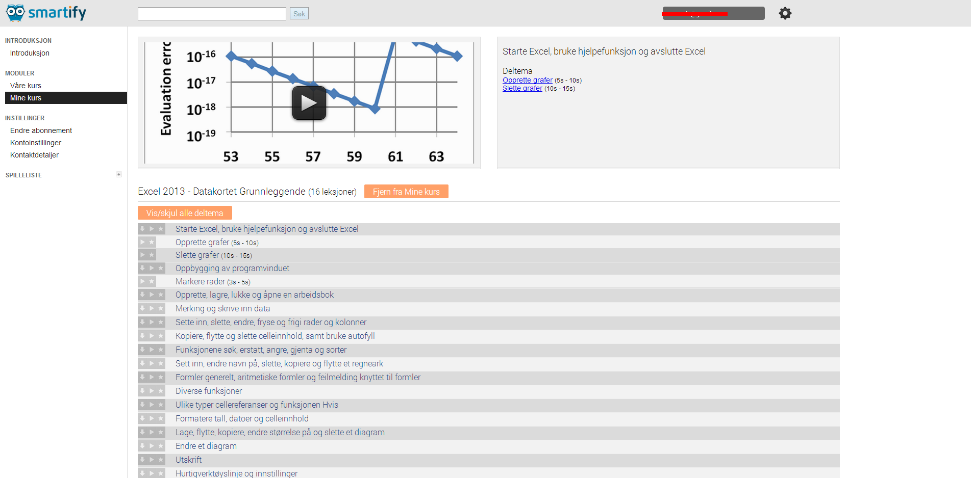 - Please note: If you look at the video-player.png file just below "Starte Excel, bruke..." there are two rows, those are sub-parts of the lesson. Both these and the main lesson itself must have some easy way to Play and Add to Playlist.