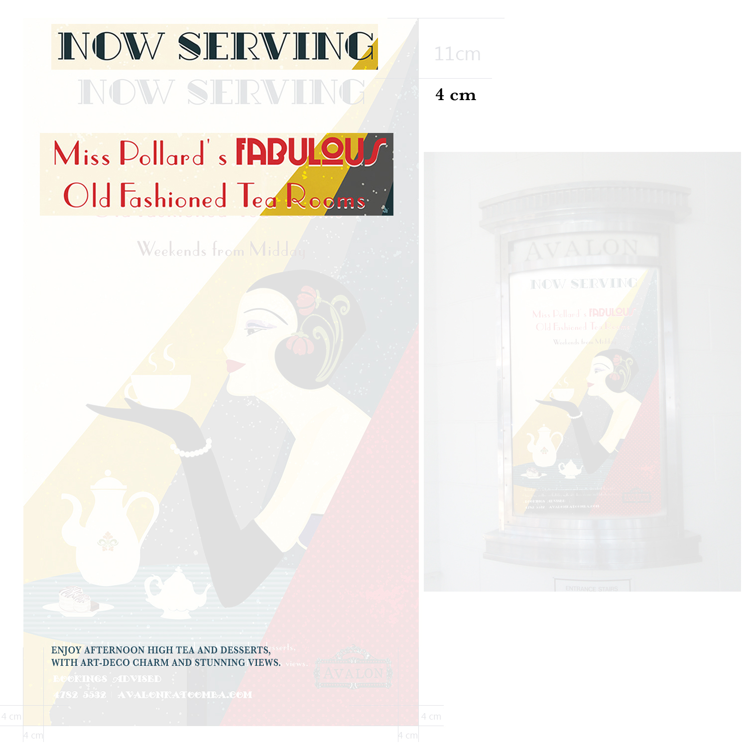 We need a poster to promote our new 'high tea' offering - Avalon presents Miss Pollard's Fabulous Old Fashioned Tea Rooms.