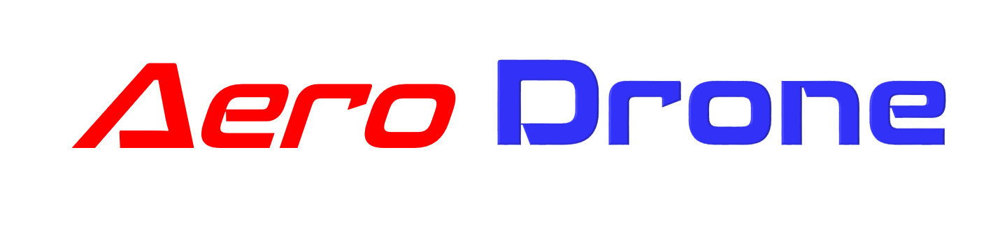 • 3. The graphic of text "Aero" in bright red, and graphic of the text "Drone" in bright metallic blue.