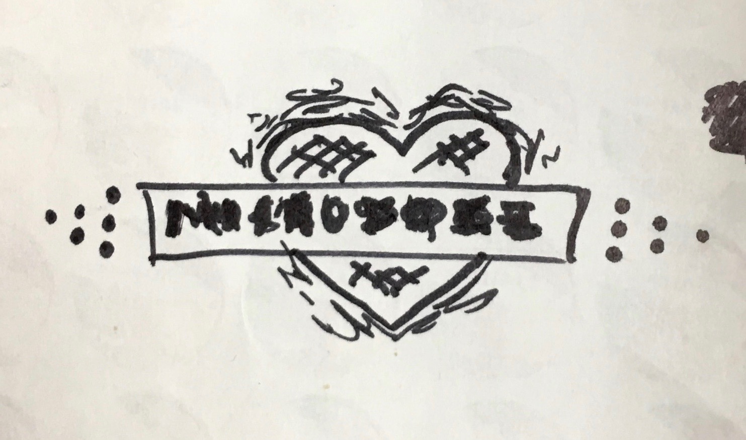 - - A heart (potentially watermarked behind the text/dots)