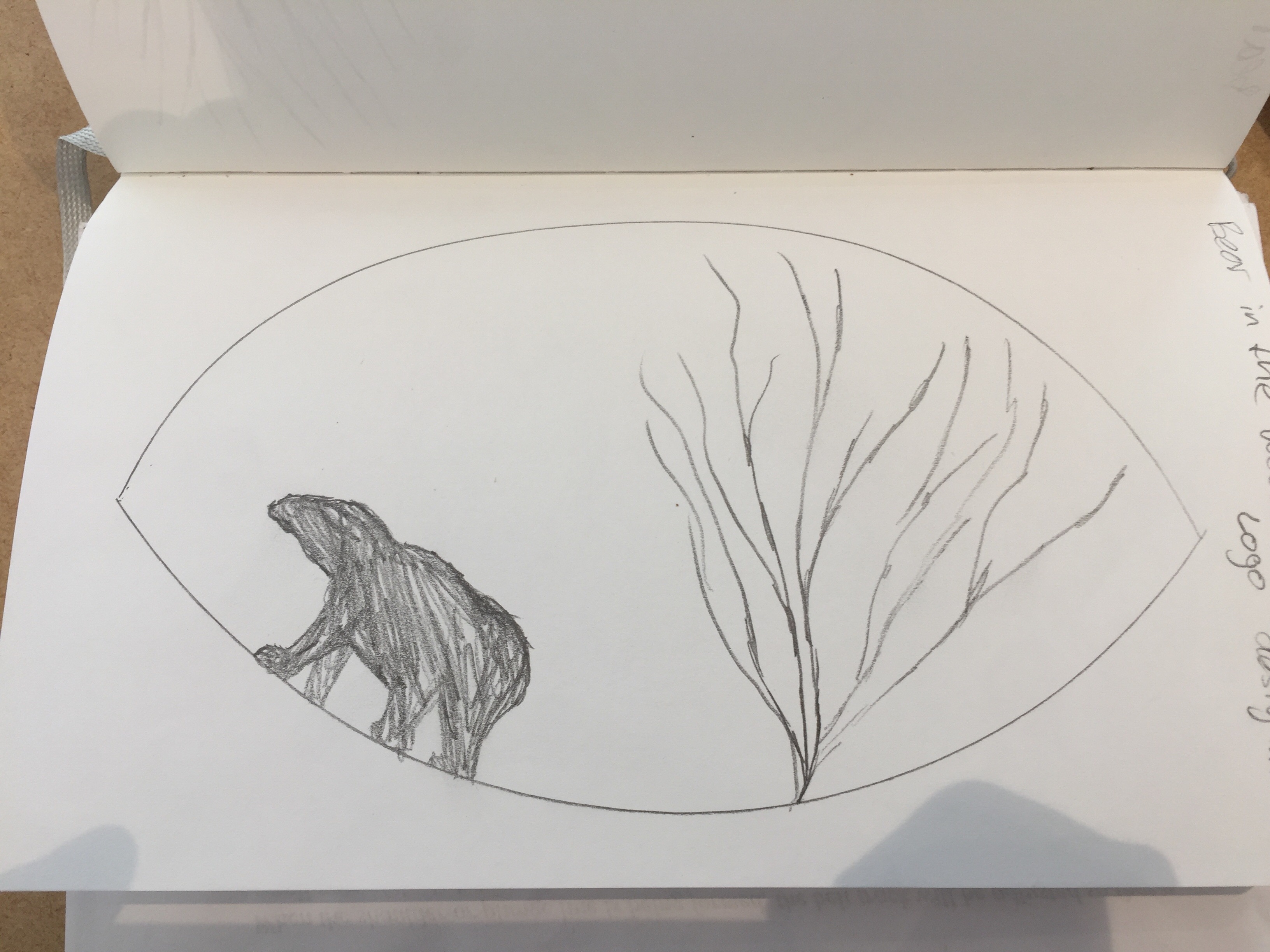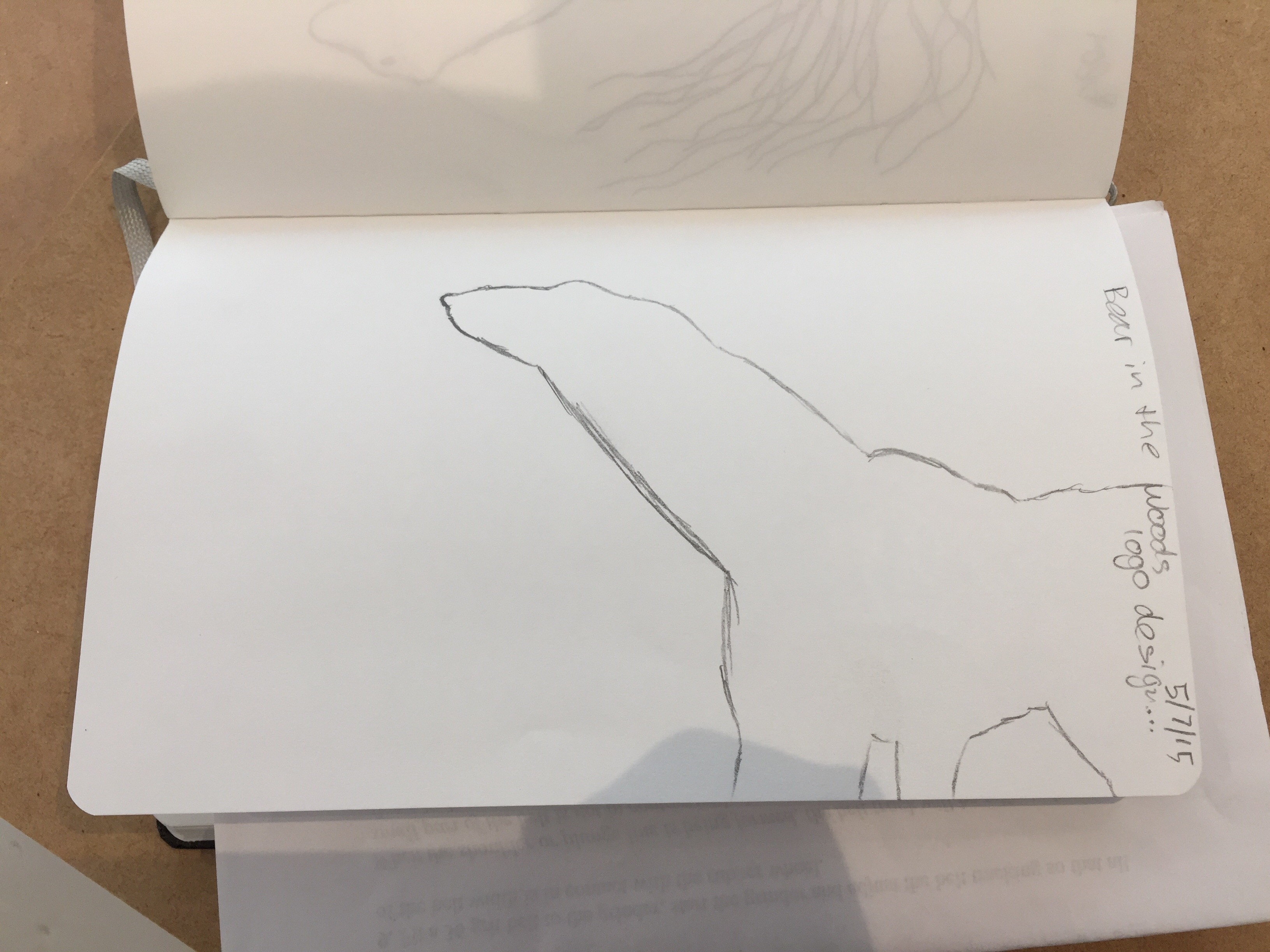The logo should include a bear(specifically a polar bear) silhouette or simple line drawing, tree or trees and the business name: Bear in the Woods