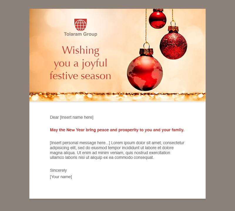 We're a family business with our HQ (where I'm sitting) based in Singapore. We have strong cultural guidelines based on Trust, Respect, Commitment, Courage and Humility, and our tone of voice is usually quite sincere and professional - even during festive seasons.