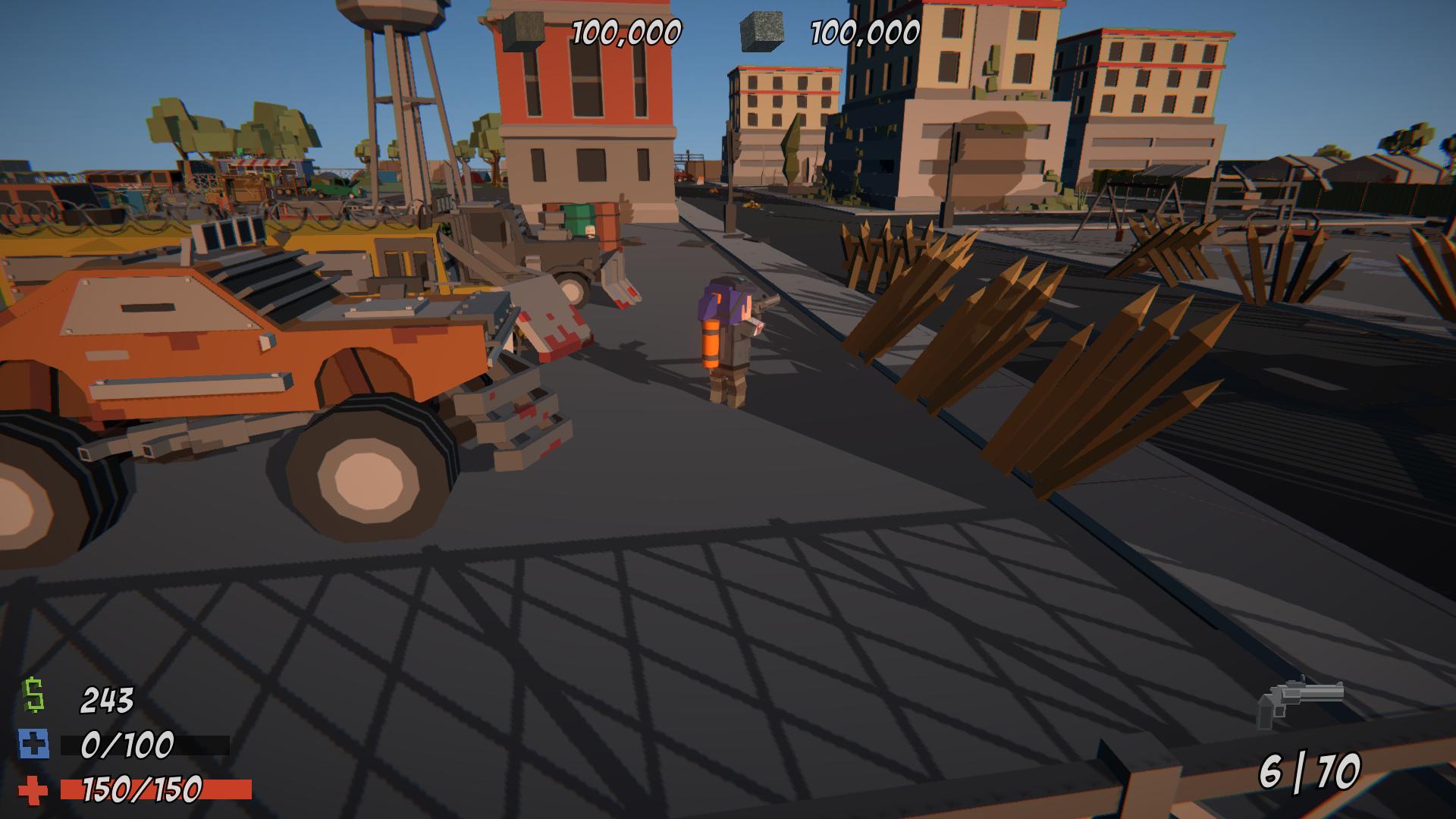 2. Players construct their own fortress out of blocks (similar to minecraft) using resources that they can gather from the play area. The Player will need to periodically defend their barricade from Zombie attack or other Players.