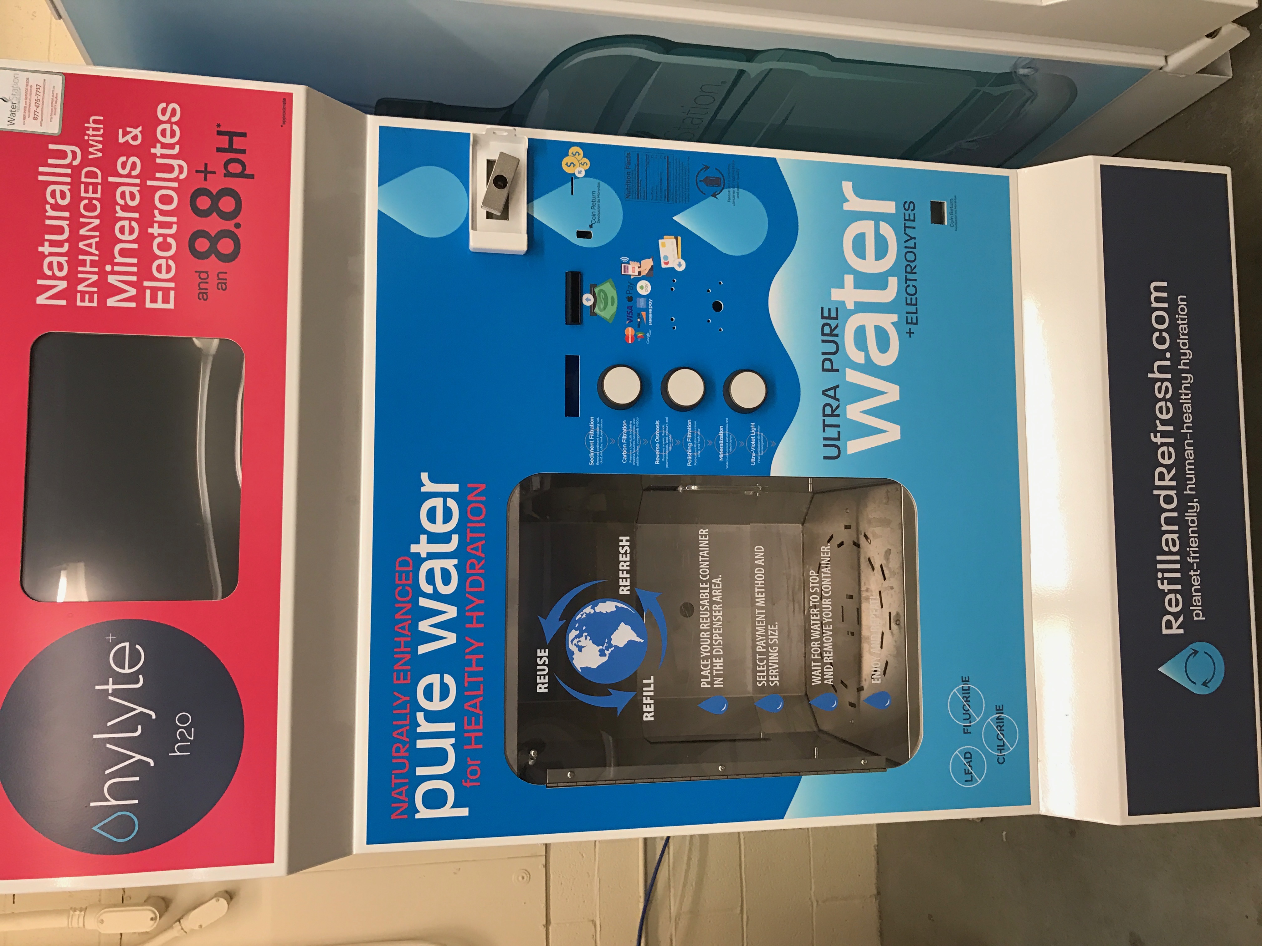 We need a 4 sided design for a standard half gallon carton (Evergreen packaging 3.764" x 3.764") you'd see in a grocery store. For the barcode 1.25 W x 1 H inches will be fine for now. I'm assuming we can tweak these things later? I attached a picture of our bulk water machines for further context around the brand. Our product is alkaline water. We want to emphasize our differentials vs. the competition. On the store shelf that will be a cost effective delivery of alkaline water in an eco-friendly container. At a company level it's the statement below. We're open to how to best integrate this neatly and cleanly onto the package.