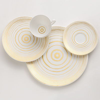 4-piece dinnerware with metallic gold elements