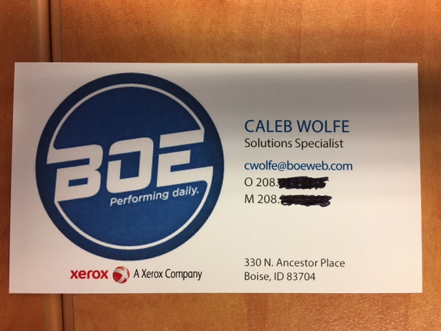 On the logo that says Performing Daily under the BOE we are going to be removing that phrase and simply putting Boise Office Equipment.