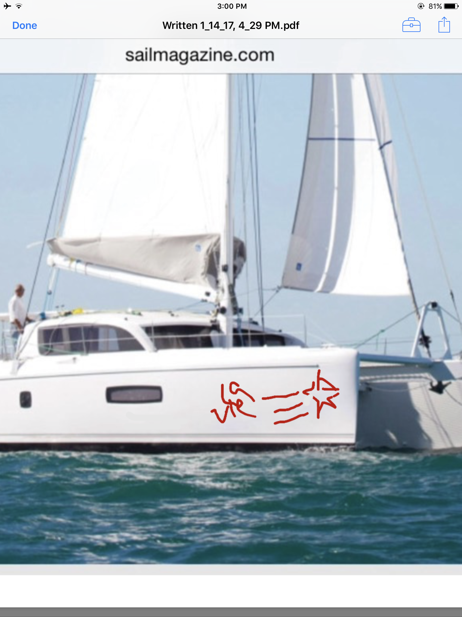 Boat is 51' catamaran by Outremer.