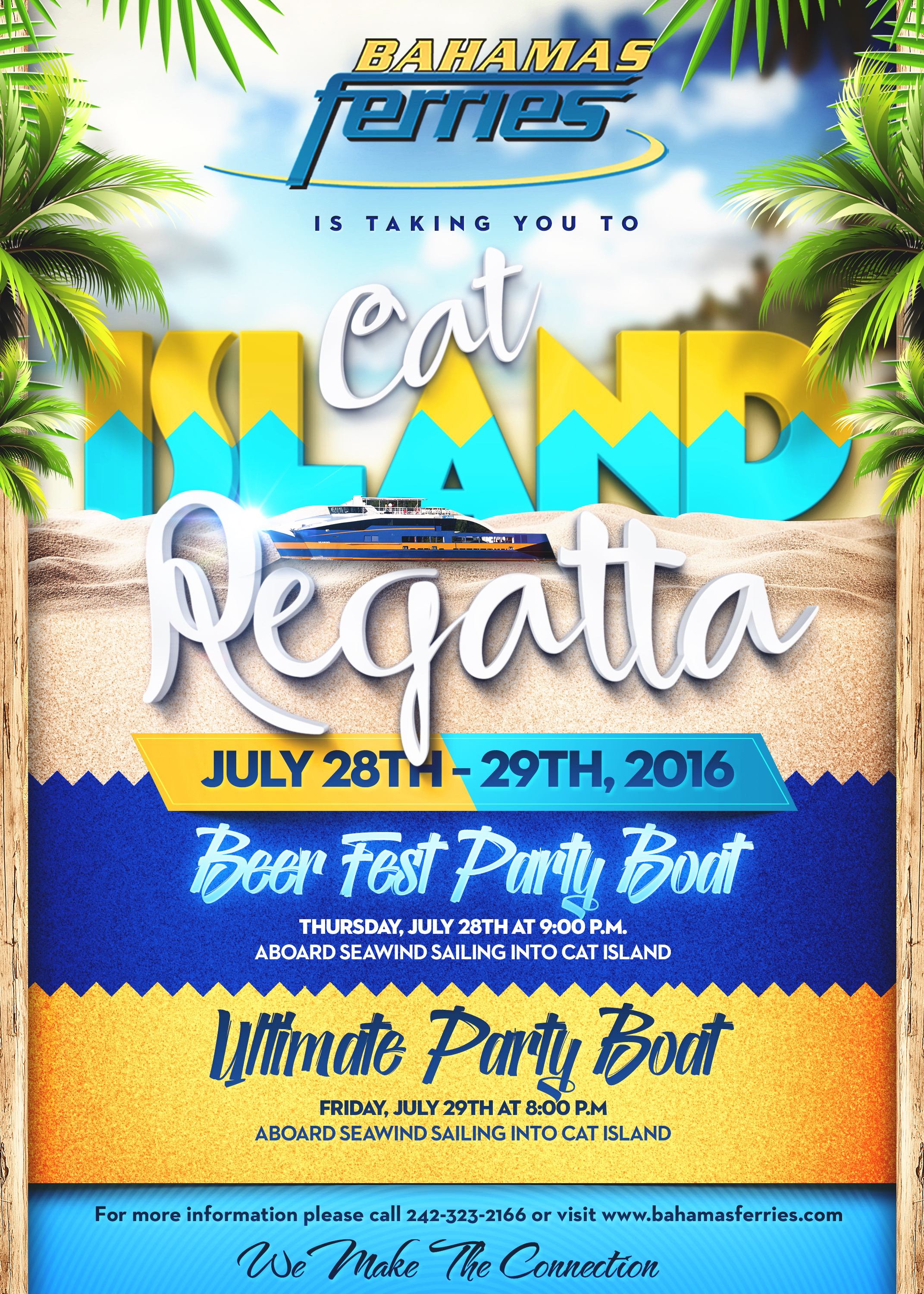 - The ad should be 7"x10" Please ensure the title text "Cat Island Regatta" has the same look and feel like what was provided in the example flyers. i.e. 3d or with gloss effect.