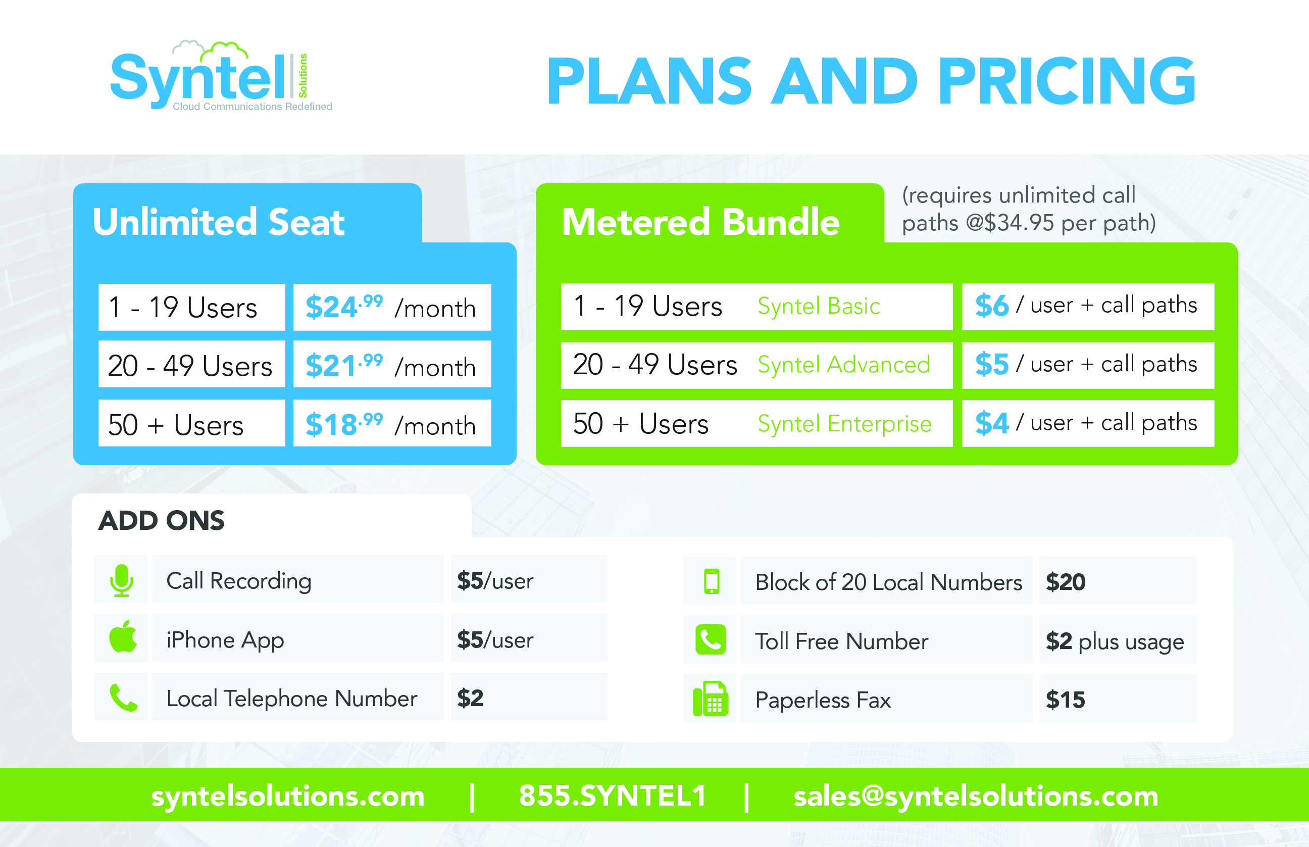 - Additional Local Numbers: $1.99/number