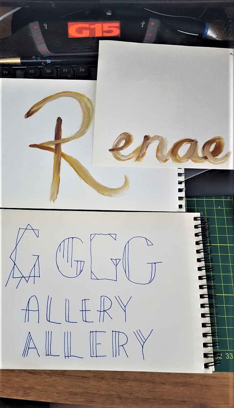 - Emphasis should be on the R/Renae, not the G/Gallery parts. Maybe different fonts, sizes, or the composition will help with this.