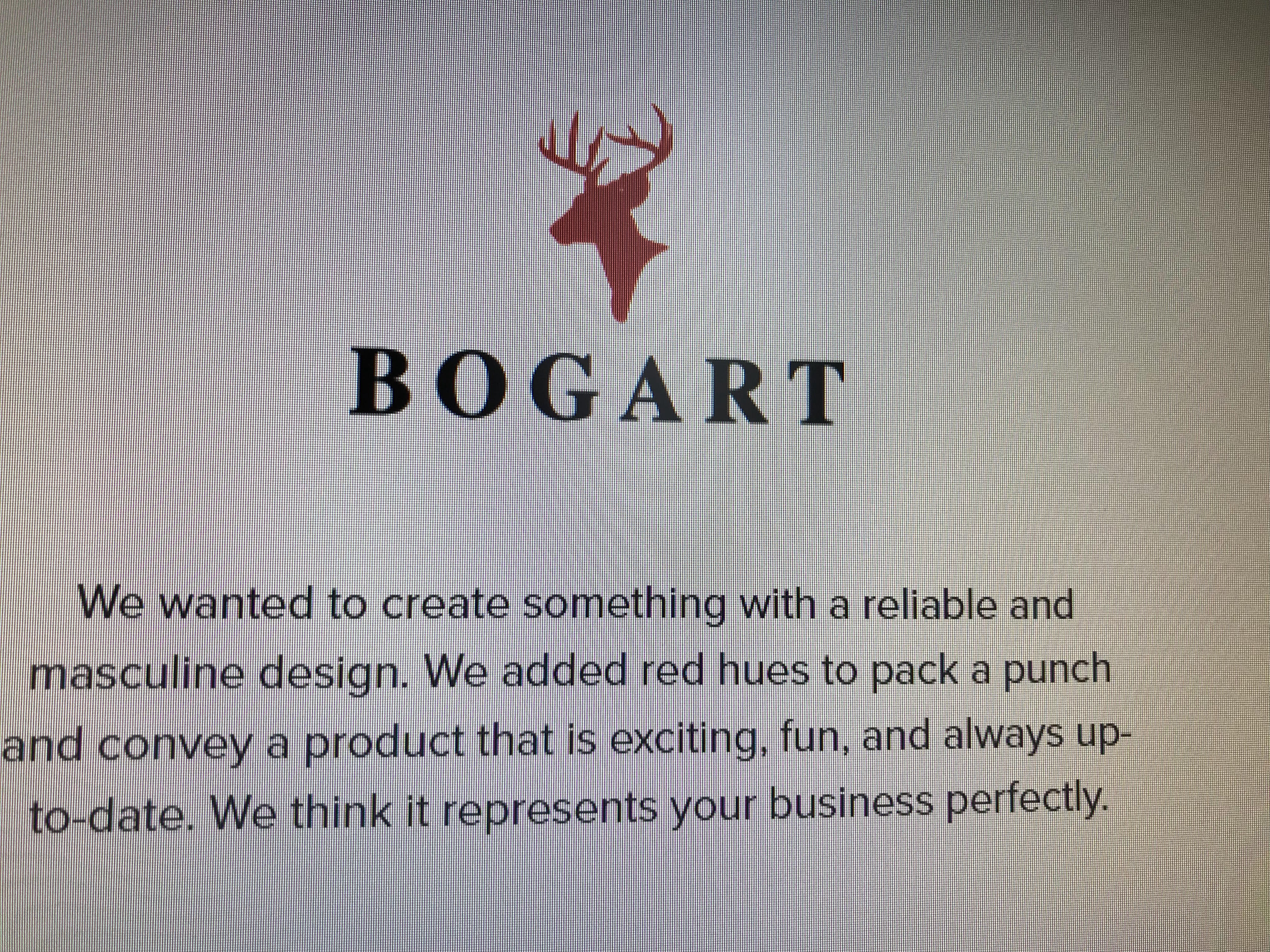 I need a logo design for a new company based in Bogart, Ga. The company name is "Bogart" and it will be an hunting/outdoor apparel and lifestyle company. We would like to see designs that utilize a simple approach and not overly busy. We're undecided on whether or not we want to use a picture in the logo or use only text, so we are open to either.