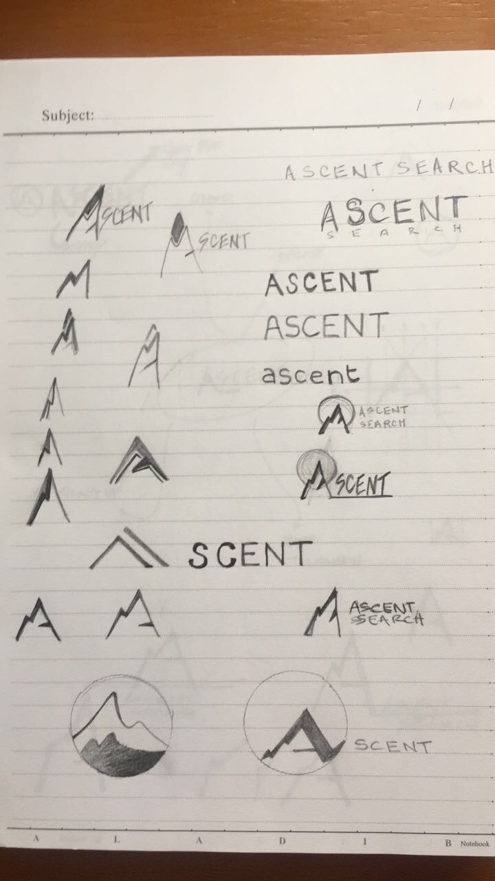 We need a logo for a new company named 'Ascent Search' - the company focuses on hiring leadership talent for global companies; and the concept we have is to have a logo / icon that can be used as part of the lettering; and alone.