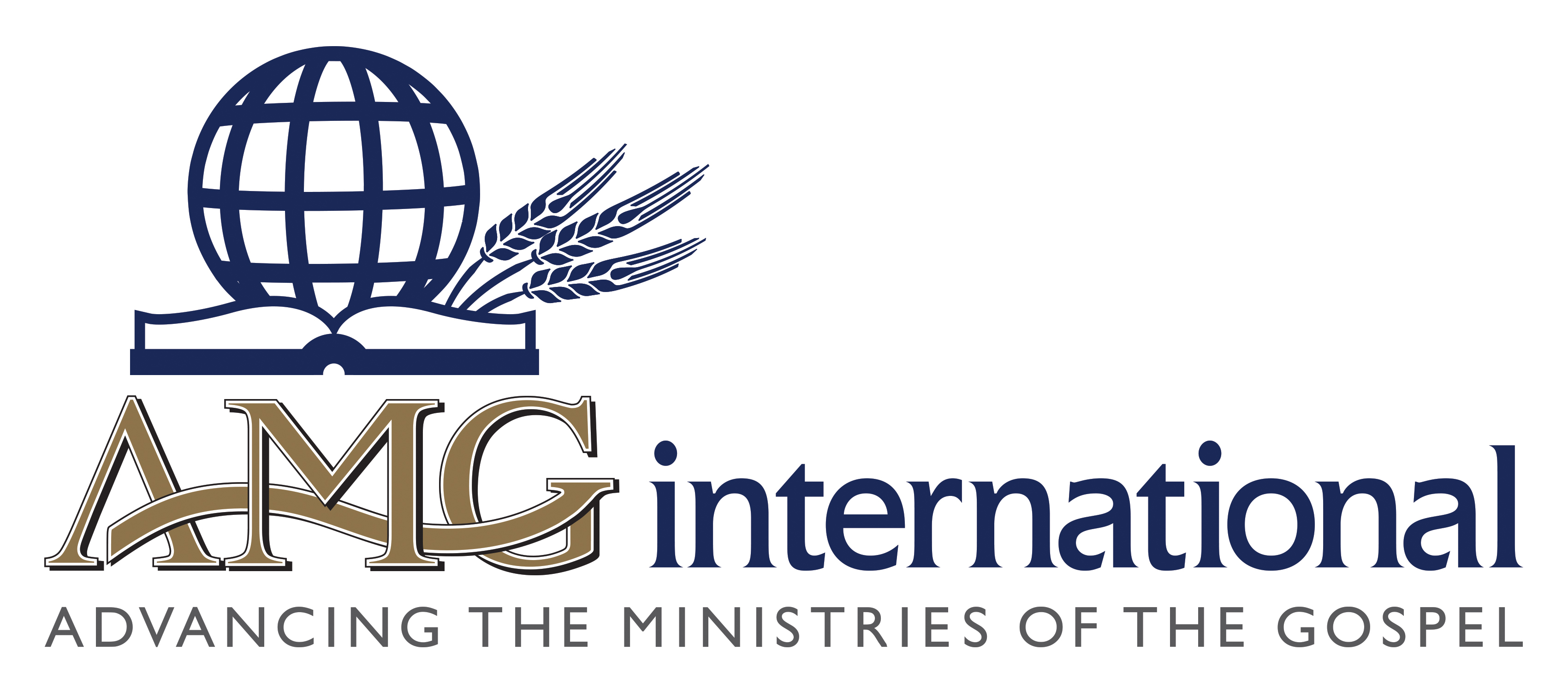 - The logo should include "Advancing the Ministries of the Gospel" underneath it. We'd like to have the world/globe included in the design. Please use blue and white as the primary colors. Accent colors are welcome. The logo must say AMG International. I'd like to get a logo that includes the words "Advancing the Ministries of the gospel" and the same design without that phrase.