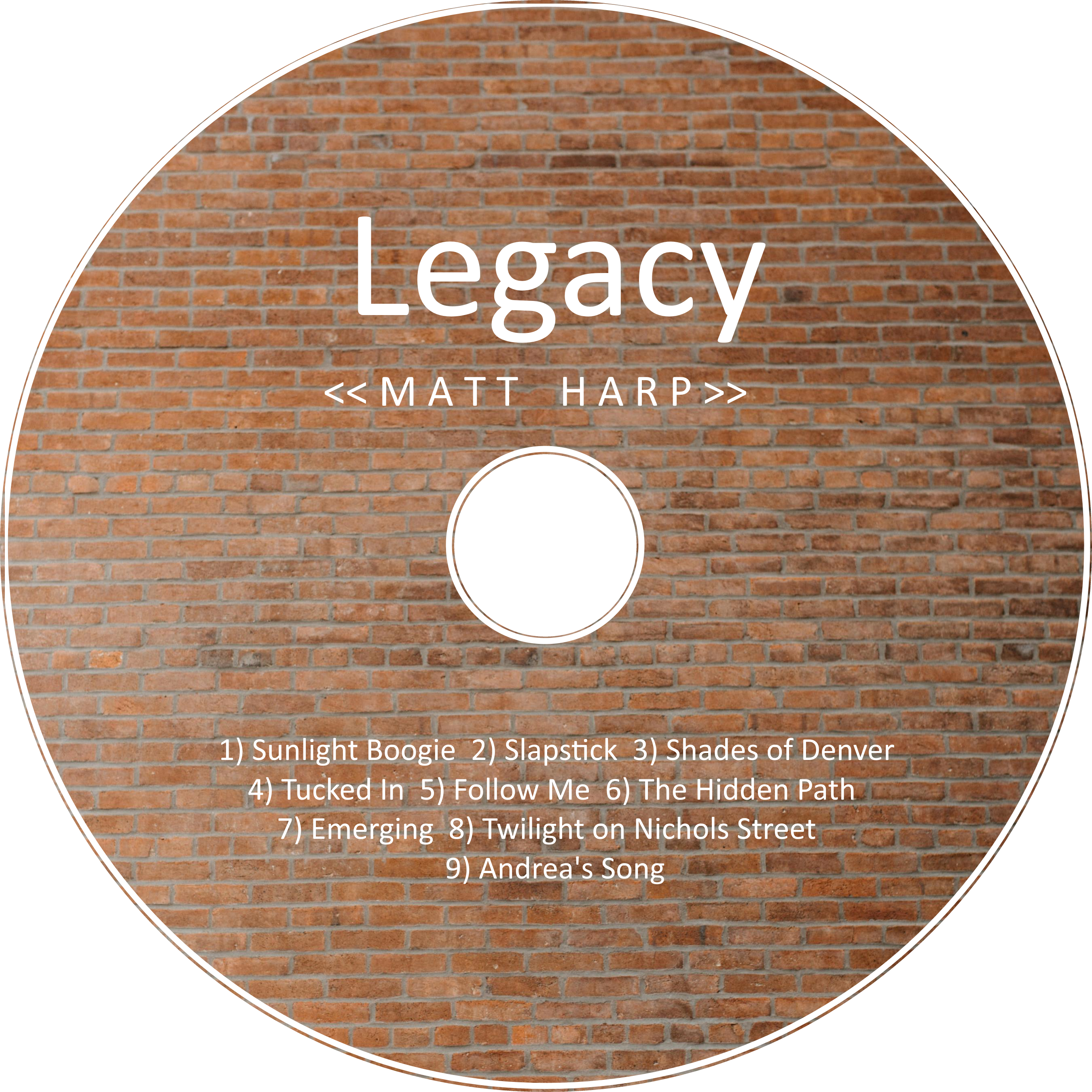 I am a musical artist releasing my first full-length solo album. It is composed of nine original "percussive" acoustic fingerstyle songs. Some of my earlier recordings (not for this album) are available at http://www.reverbnation.com/mattharp for reference. I am looking for creative album art and need both a front cover and back cover/track listing for physical CD replication and online album art purposes. I am open to a more "natural" design using the pictures included in the uploaded files section or to a more artistic design that doesn't use any of the included pictures at all. The name of the album is "Legacy", and artist is "Matt Harp" (me). The track list is: