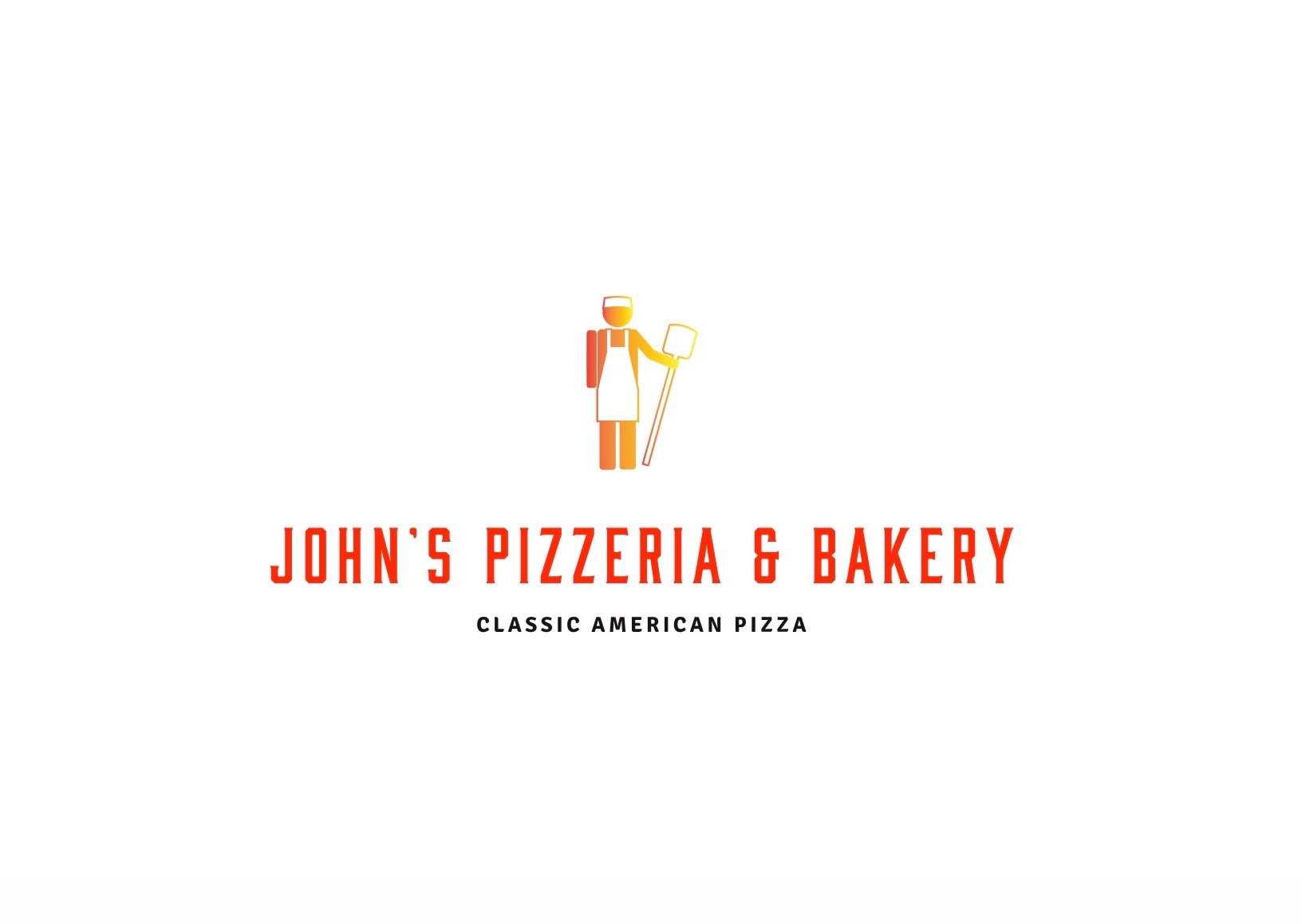 Classic American Pizzeria in Singapore. The final design should be centered around our 'mascot' in the shape of a standing man with an apron on holding a long wooden pizza peel (see attached photos for examples). Would like the text print of the business to be classic, simple, but memorable ('franchise' style font). Prefer colors in the reds/yellows category for the 'mascot' but will consider other options. Our website for any inspiration or reference is www.johnspizzasg.com | The subtitle to the company name should be "Classic American Pizza". Please provide designs for the title with the mascot and just the mascot itself as we will be using mascot in other designs as well.