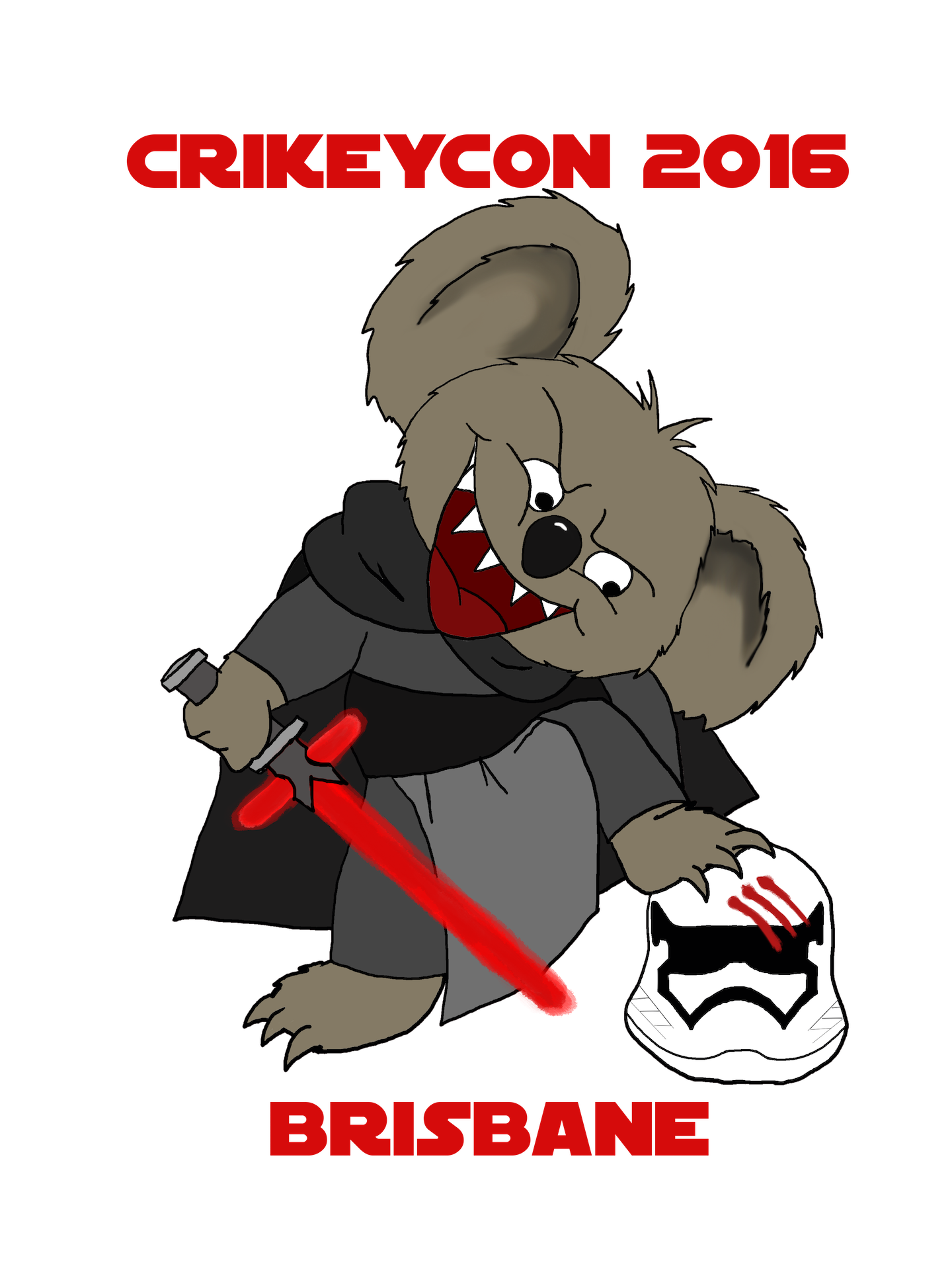 We need a T-Shirt design for our 2019 hacker (computer security) conference featuring our mascot Droppy the Drop Bear. Drop bears are mythical Australian creatures; they are basically Vampire Koala bears, ready to drop on unsuspecting tourists and devour them. Droppy has feature in different forms in all our conferences.