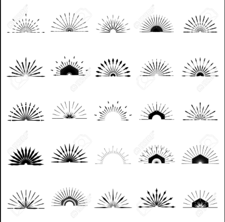 - symmetrical, fine line design, geometric, sun design.