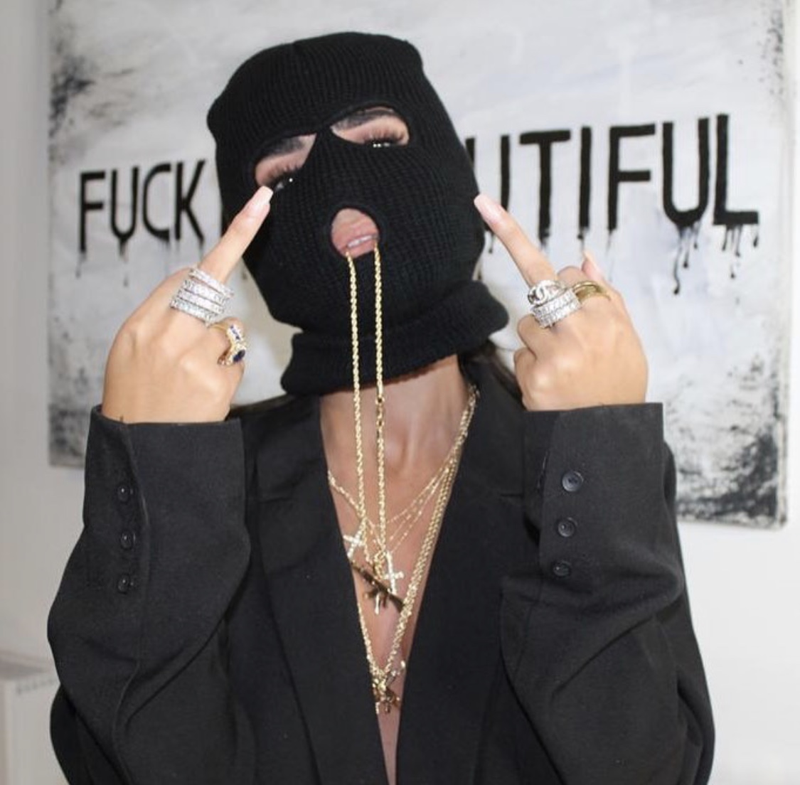 I want a logo to put on a private label cosmetic brand I am creating. I am leaning towards something with three masked faces side by side. Pink rose gold or mauve coloring. Something feminine, bad ass and alluring. I am thinking a ski mask with a few vertical lines. Can even add plump lips with lashes under mask?? Can add pony tail or buns to mask. Feel free to put your own spin on it. I'm open to different ideas. I just want it to look badass. REFER TO INSPO PICS BELOW PLEASE AND FONT REQUESTED BELOW AS WELL.