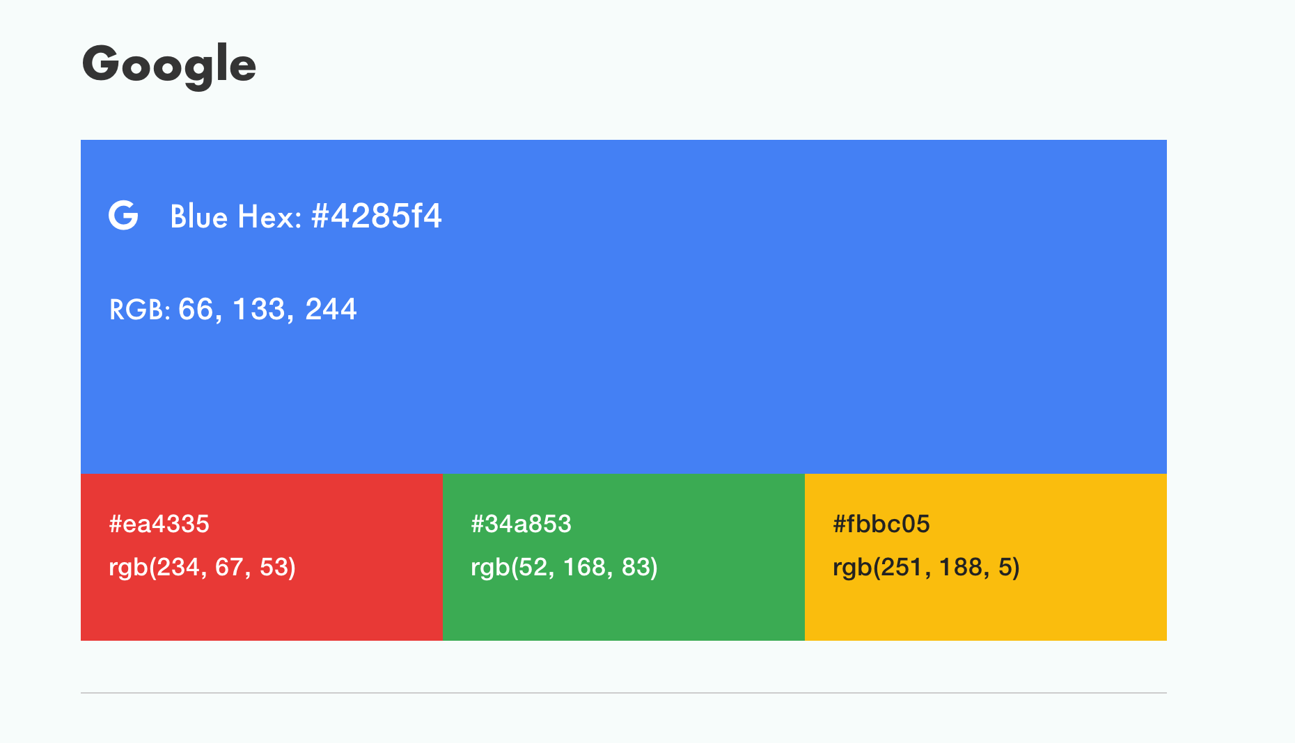 - Bold PRIMARY colors similar to Google's Aethetic-- the colors should be primary colors -- SEE UPLOADED FILES THE COLOR PALETTE WITH CODES