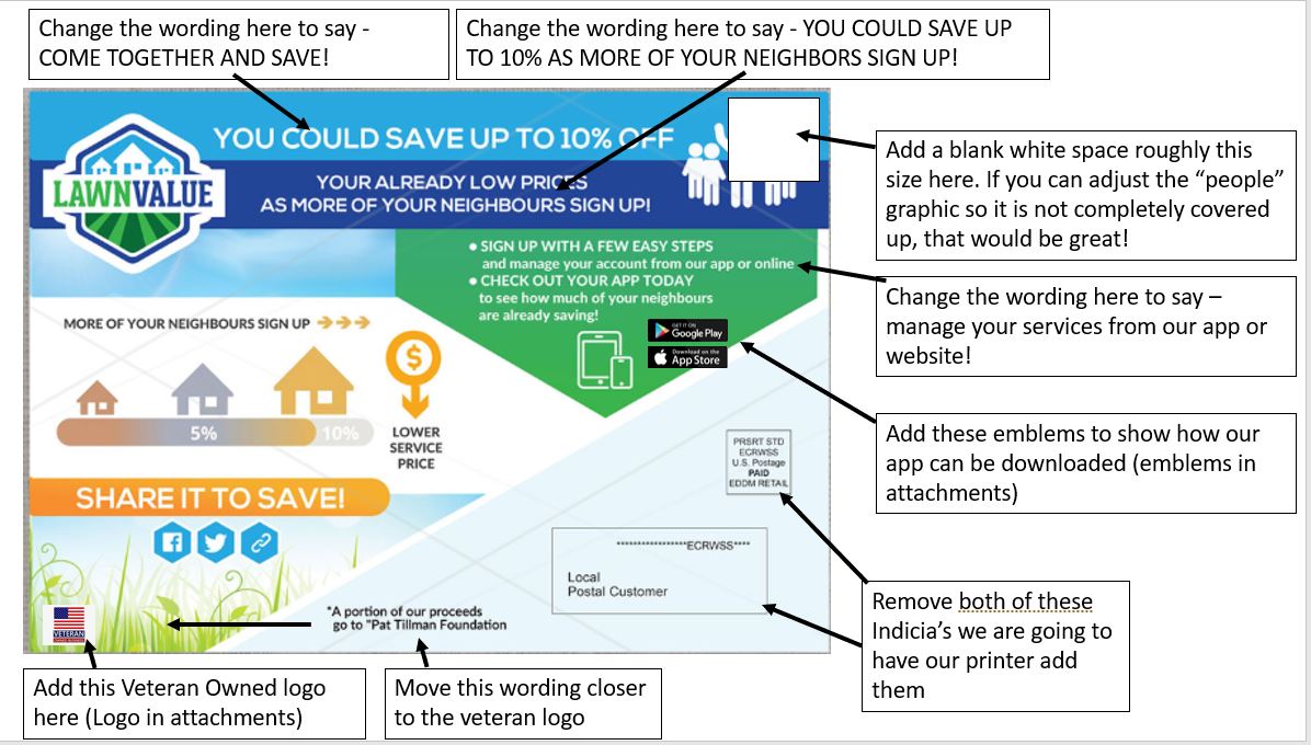 We need these to meet the USPS EDDM requirements, there are details attached for the indicias that need to be included, and where to put them on the back of the flyer.