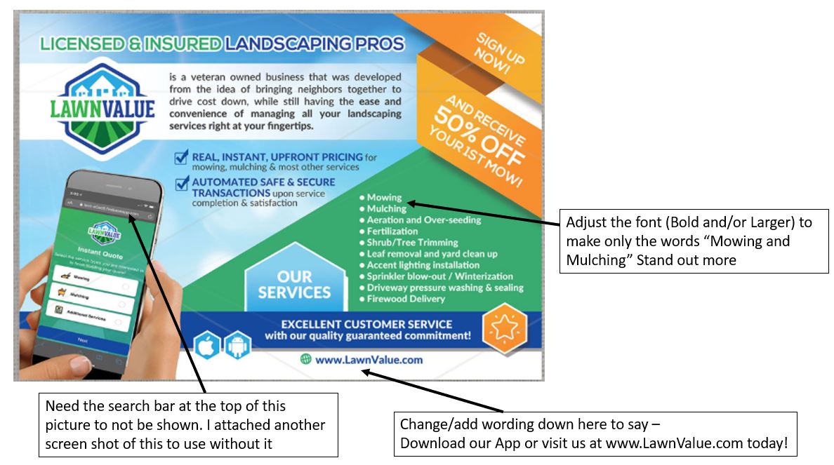 Start-up lawncare company needing marketing flyer to promote business model