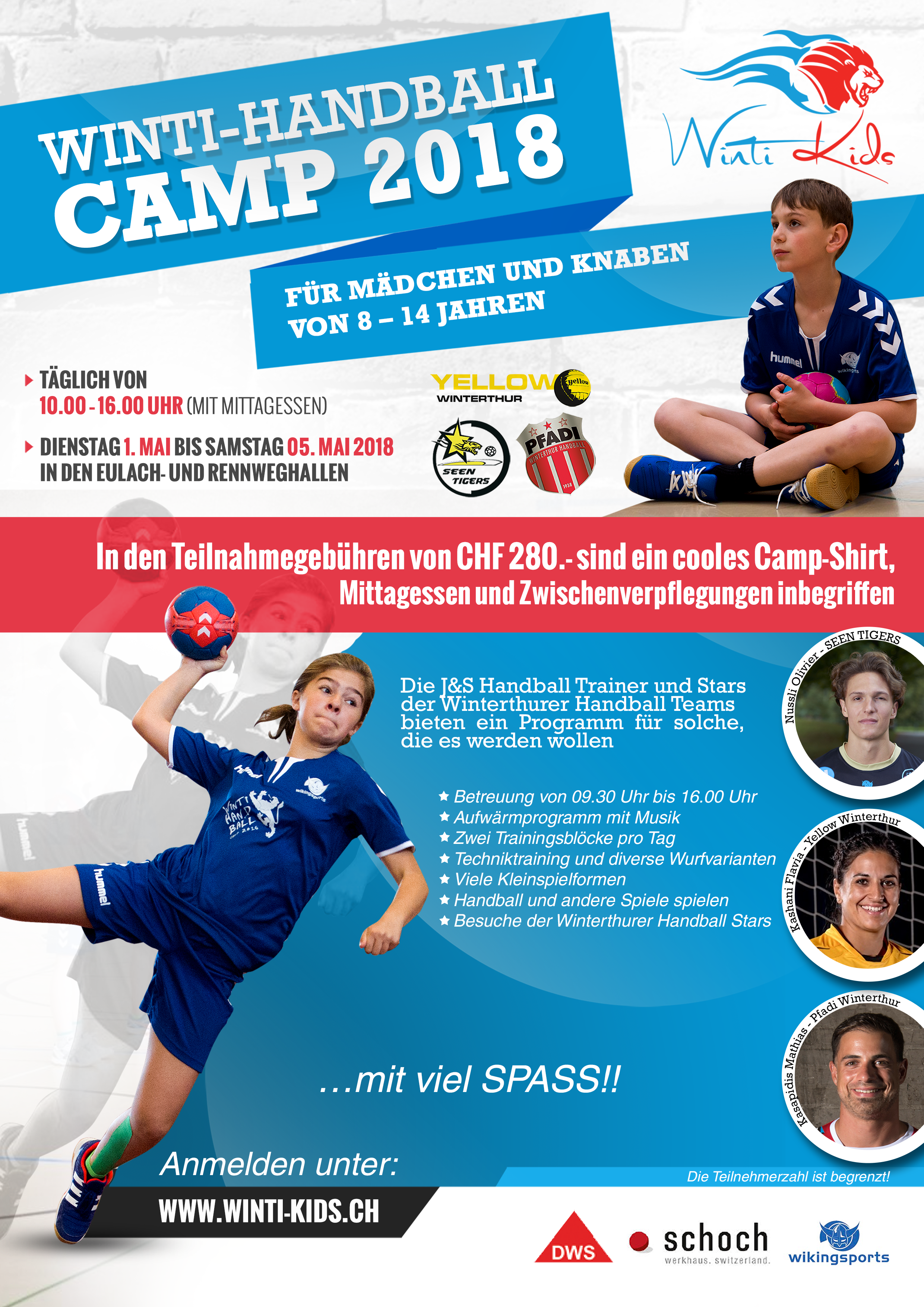 "Winti Kids" is a non-profit organization in Winterthur, which supports the recruitment of young talent by the handball clubs in Winterthur. Every year we run several camps, a tournament for schoolchildren and several handball lessons at school.