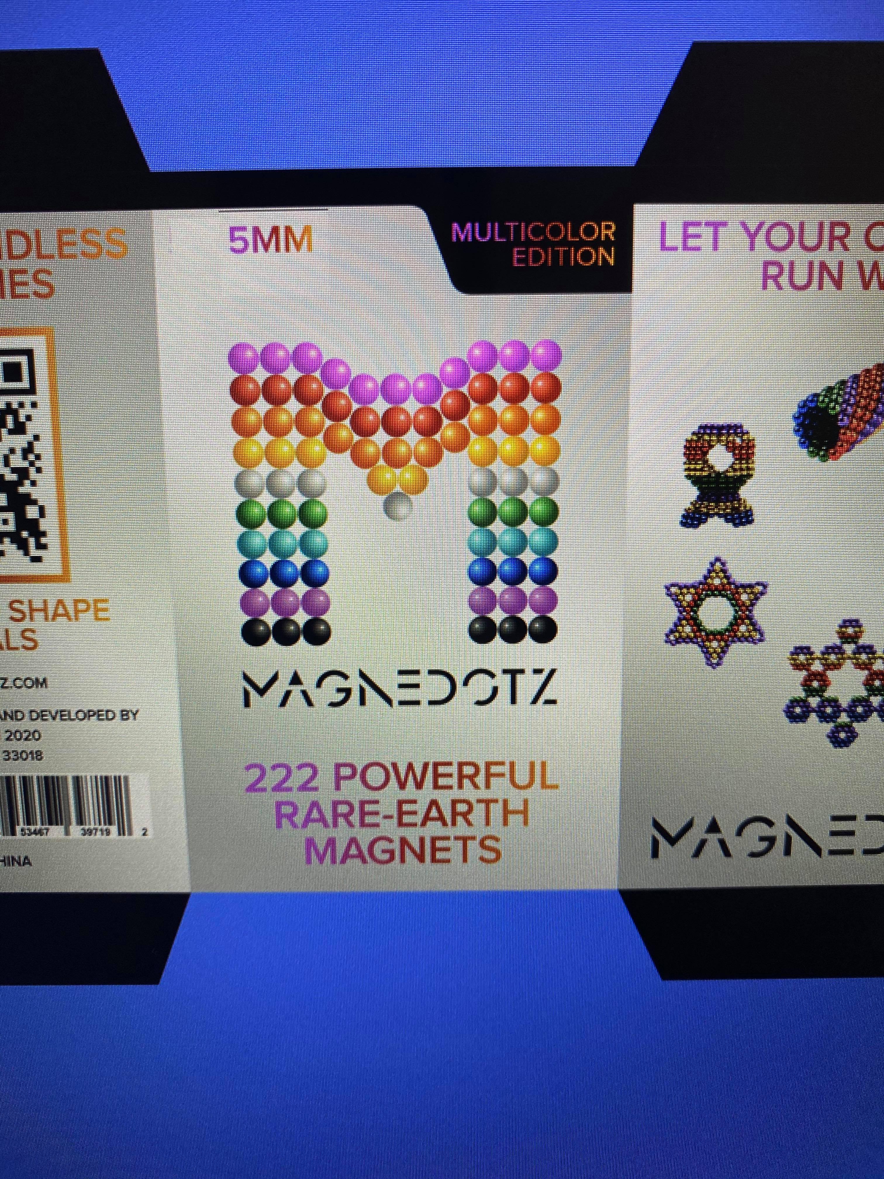 For the center of the box we will want our logo (file 2) positioned in the middle with “ 222 Powerful Rare-Earth Magnets 5mm” written under the logo. In the top right corner it will need to say “MULTICOLOR EDITION”.