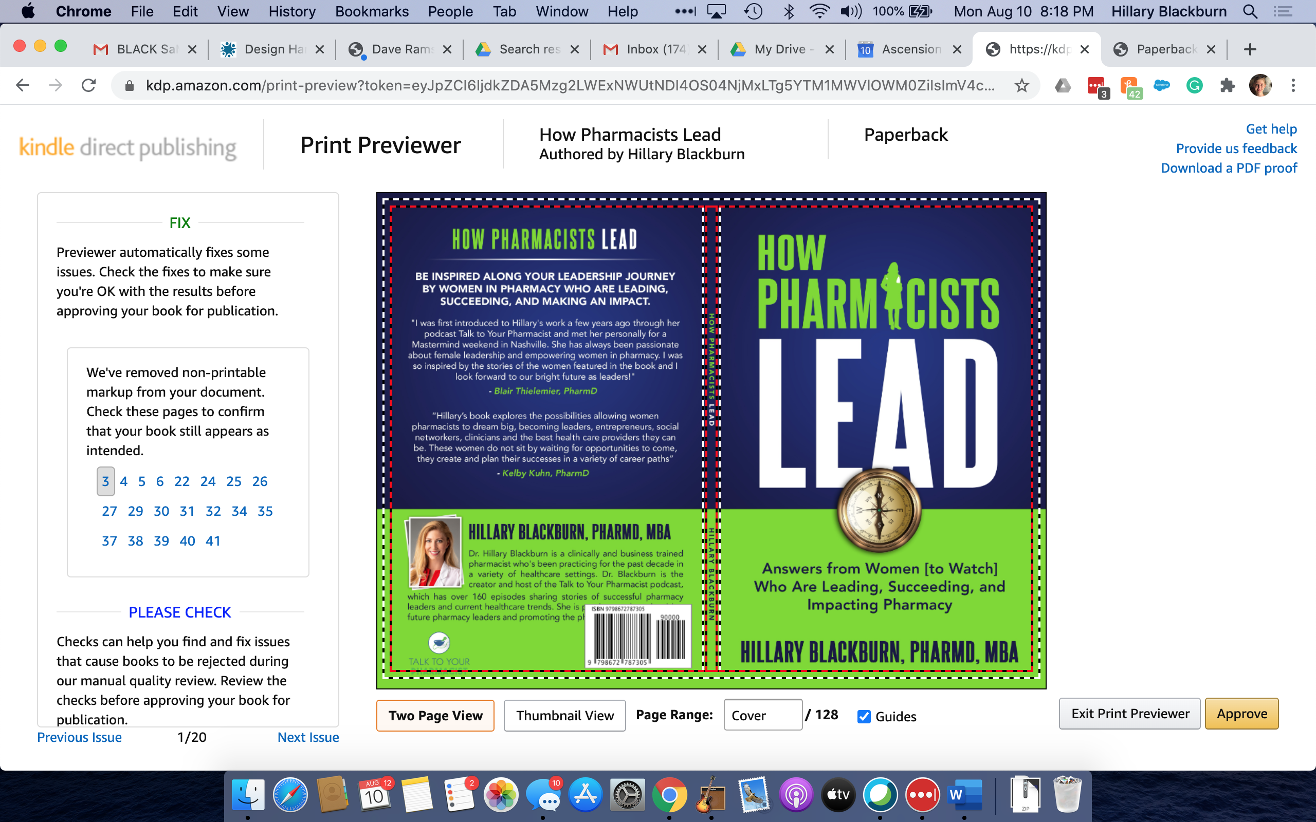 I need a cover designed for a leadership book to fit my brand of my podcast, Talk to Your Pharmacist, www.pharmacyadvisory.com, with blues and greens and a professional look since it will be for a professional audience of pharmacists.