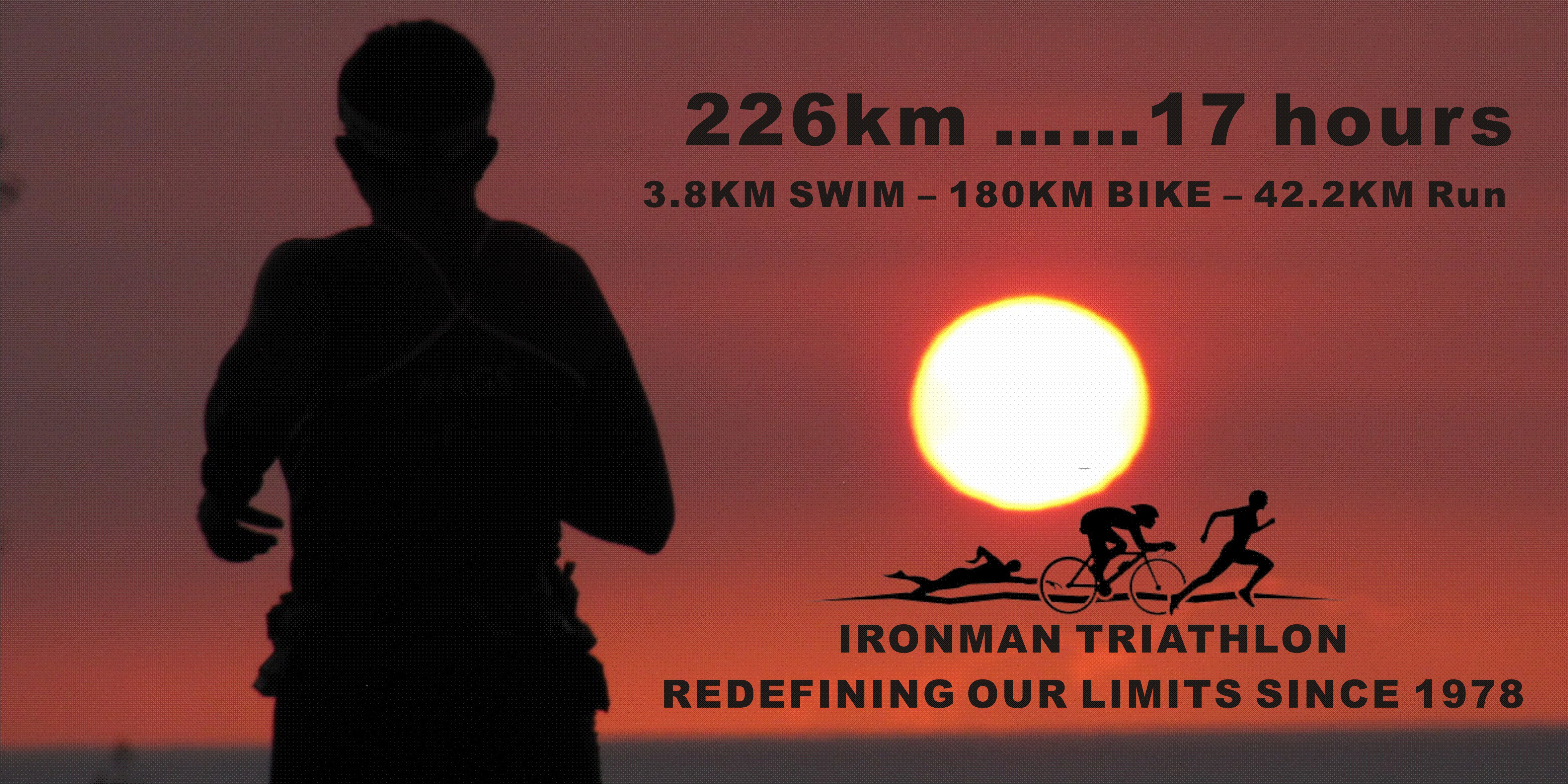 Hi there seems some confusion with some designs as to the order of the swim bike run . Swim is always first, followed by the bike(180km) and run (42k) in the IM at least. Its not a mountain bike so a bike doing a wheelie or looking like a mountain bike is not acceptable in triathlon when using logos of swimmer/cyclist and runner. I do like the logos on the towel which I designed but it was just a concept and not something I am working on marketing. I love the sunset and silhouette of the runner