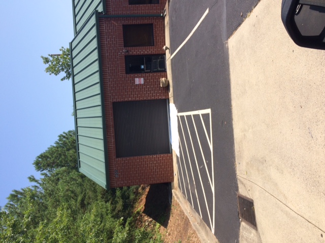 Roll up doors on front, small office with bathroom and parking