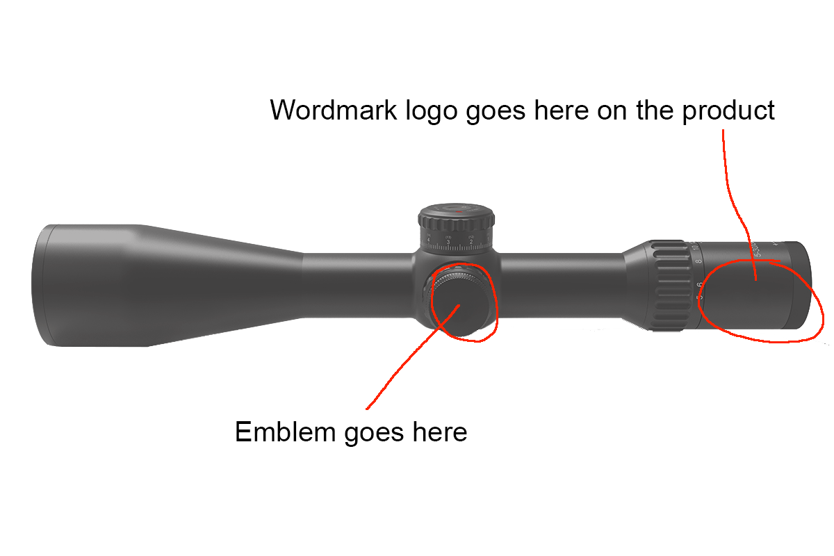 - A wordmark combination logo, and an emblem that can be used on the side of the riflescope (adjustment knob cover) or other areas, or merchandise.