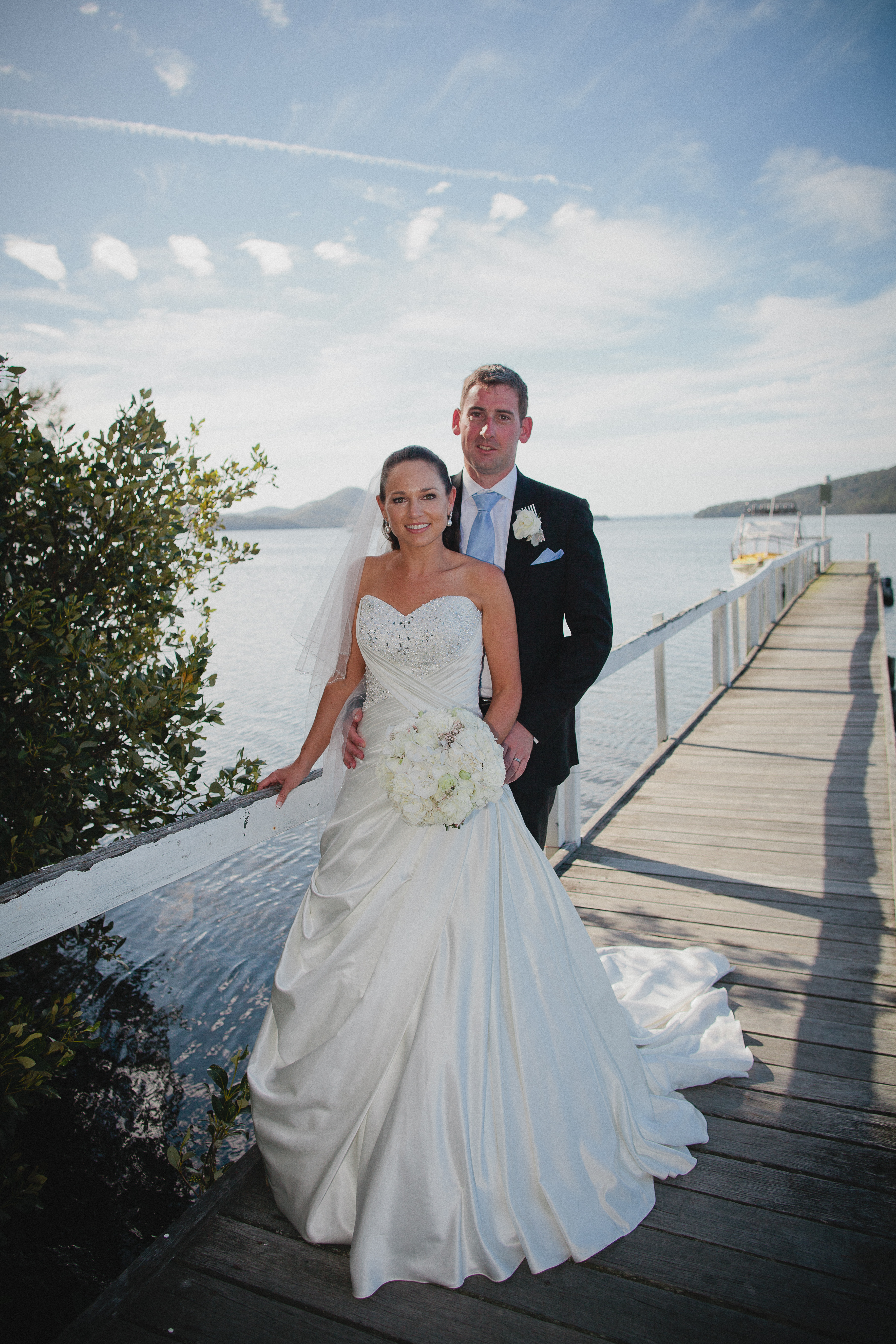 - close up photo on the wharf where he is standing behind me and there is a little yellow boat behind us