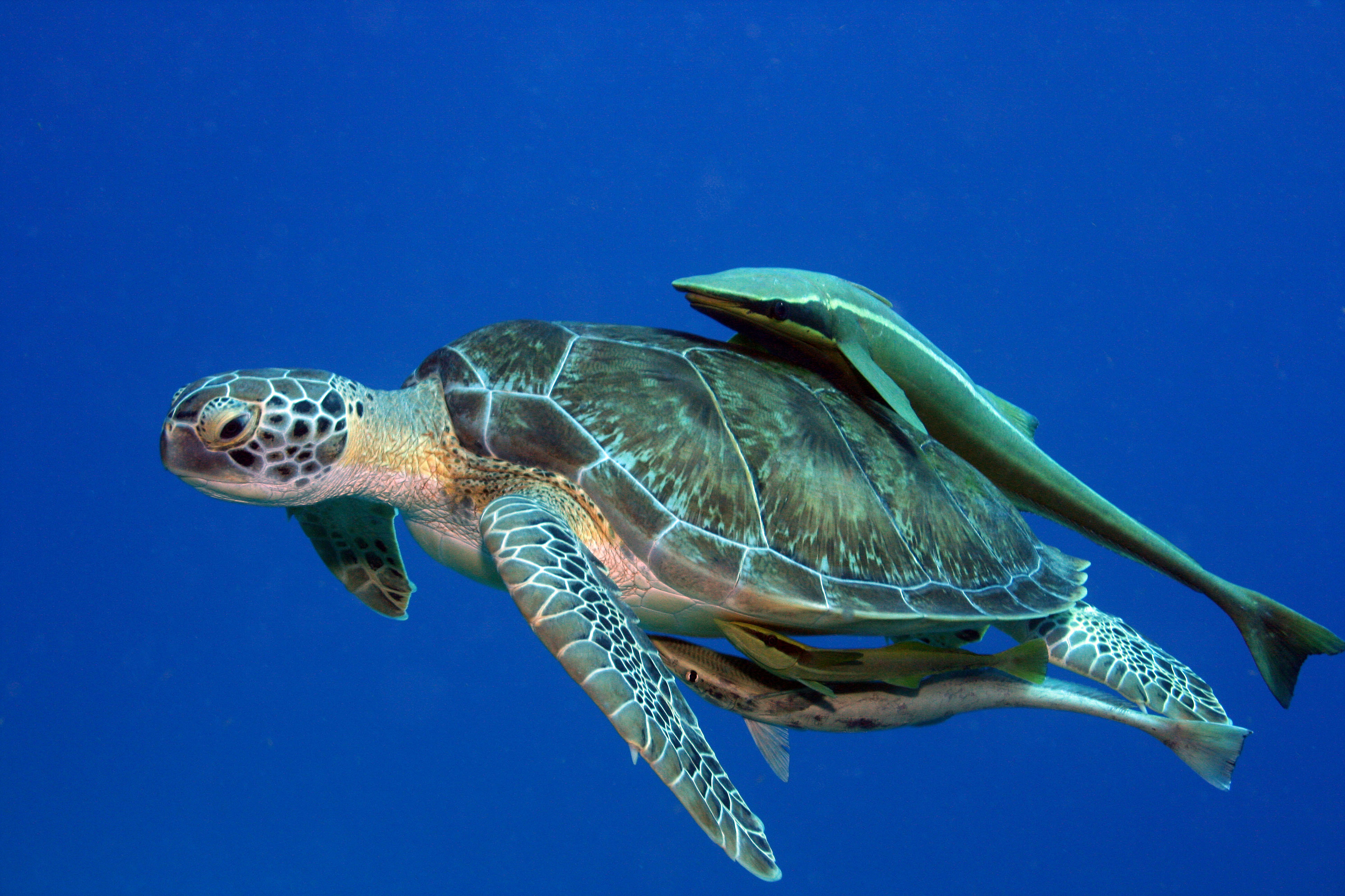 We need a logo for a website where users "hitch" rides to important events like weekend retreats, weddings, etc. The logo should use sucker fish hitching a free ride on a whale or turtle. Google "remora" on images and you will see what we are going for. Don't use a shark because it would communicate the wrong idea. The final product must be vector. We like logos that only have 3 or less colors, are simple, make an elegant shape. Doesn't need to be an exact drawing of a fish. Could be silhouette of a larger fish (or turtle) with smaller fish creating the outline inverse on its back (maybe one or two smaller fish). No bevels, no drop shadows, no borders. The font must be simple, easy to read. Ocean colors.