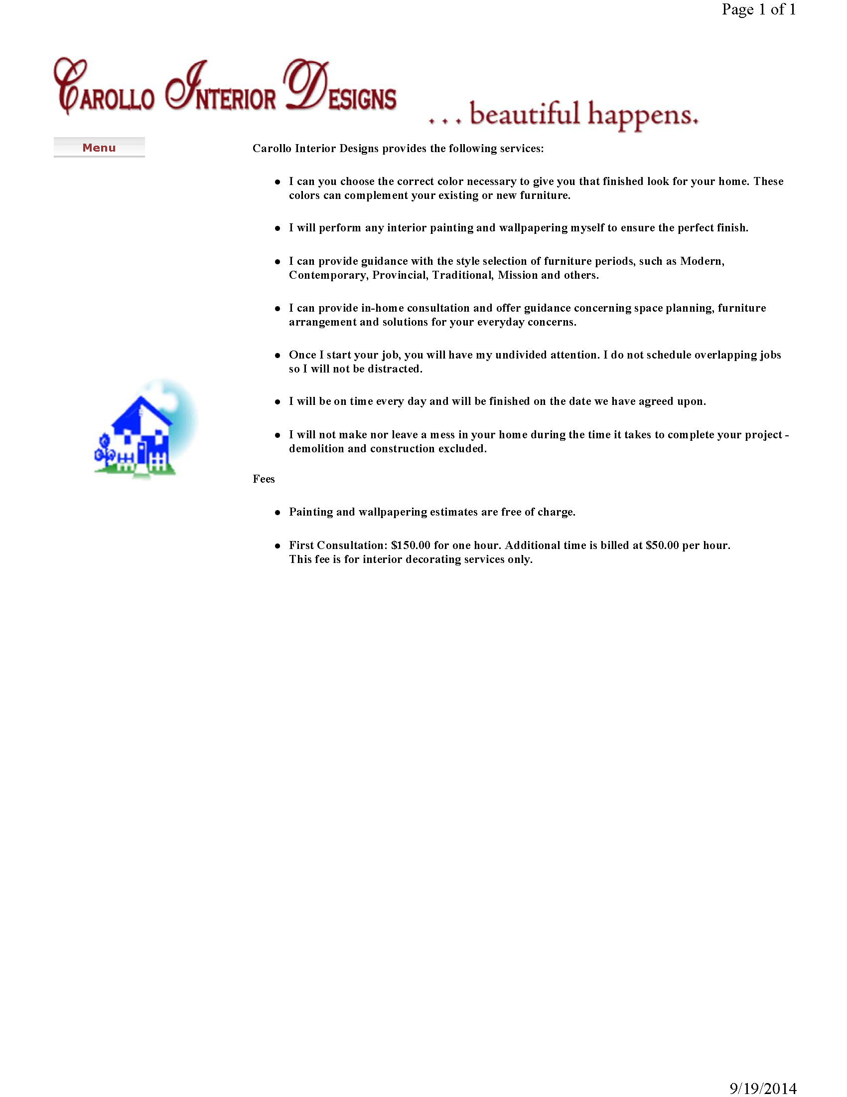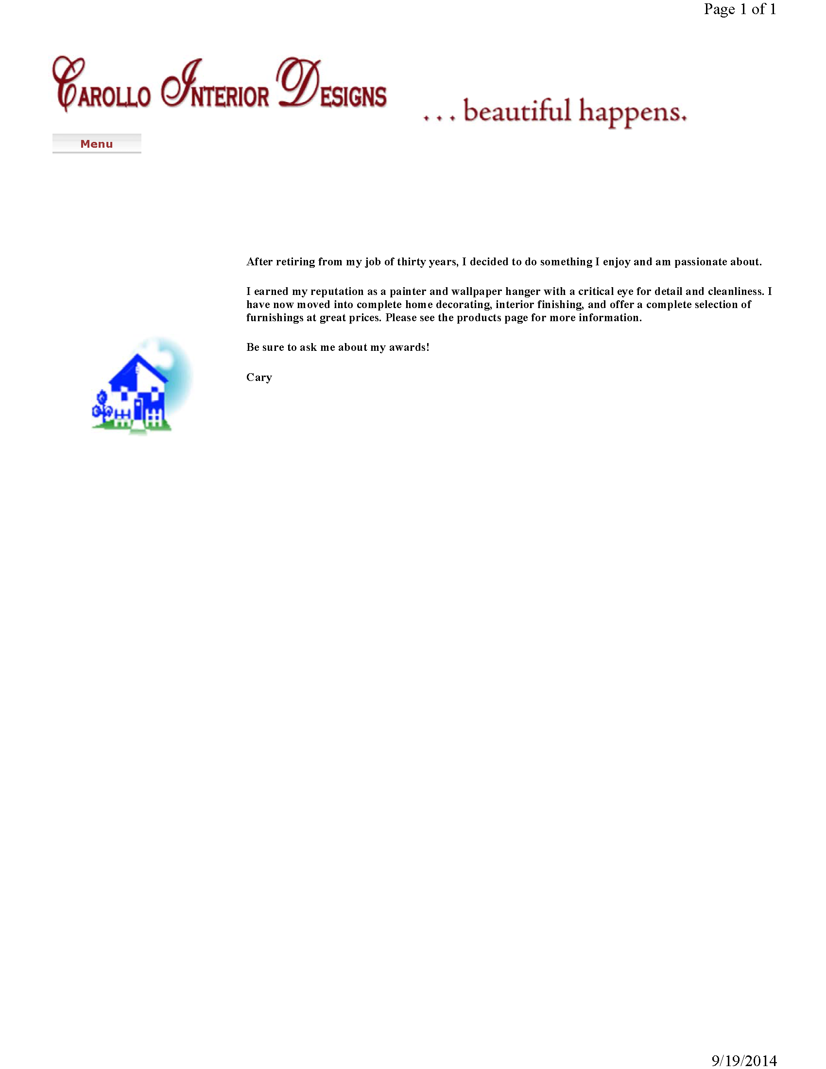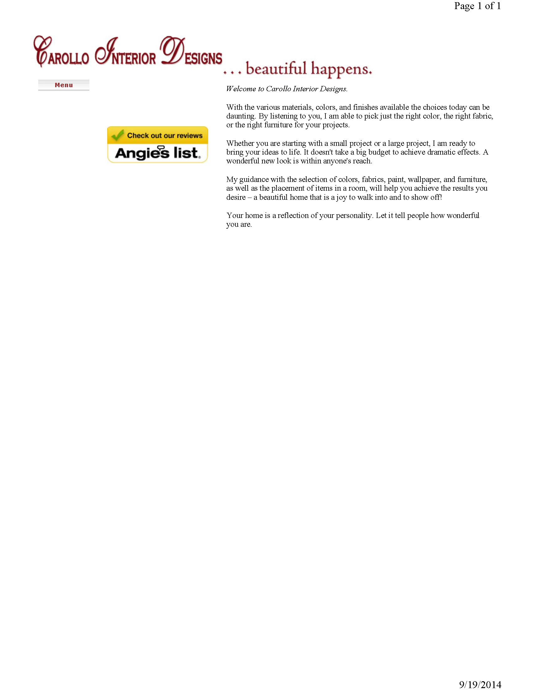 Current website can be viewed at www.carollodesigns.com
