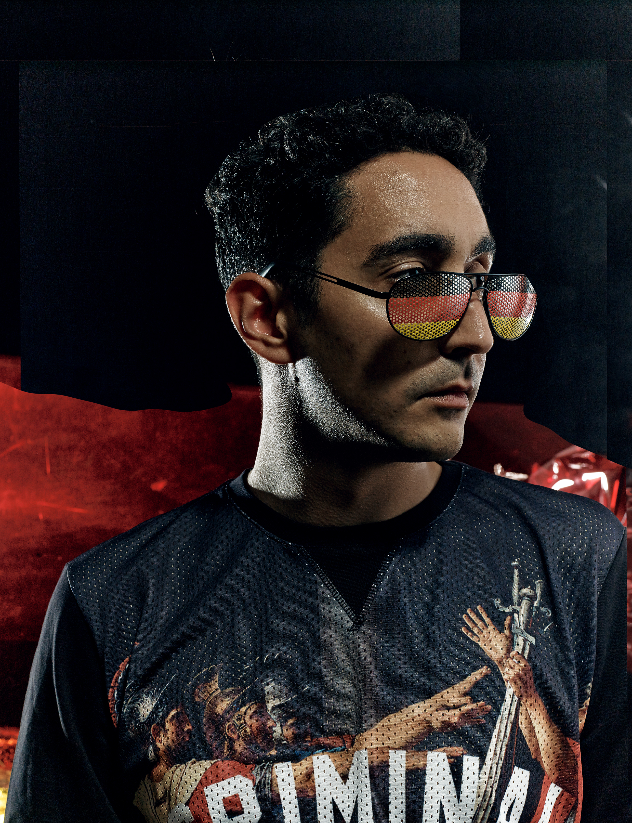 For the front side design please use one of the Pictures of Eko Fresh and the Spielraum-Logo. All of the are attached.