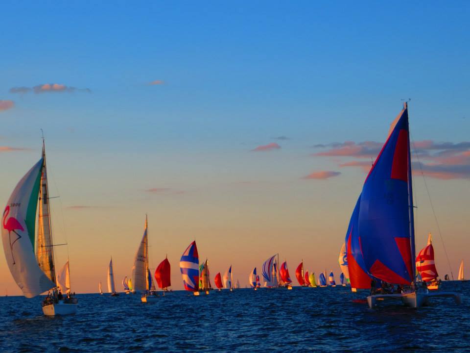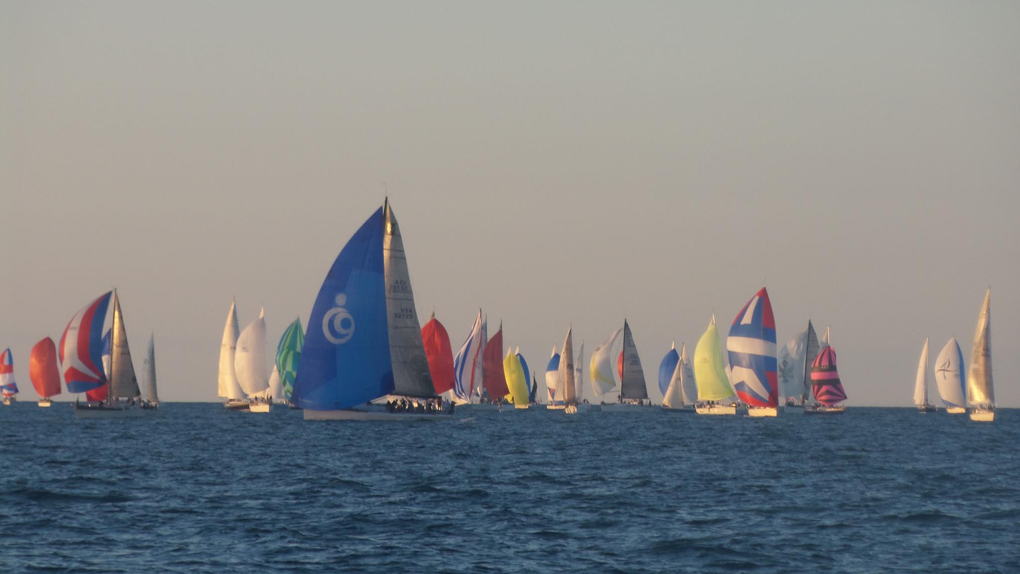 The Chicago Beer Can Series is a sailboat race series taking place Wednesday nights May-September in Chicago, IL. Approximately 100 boats of various sizes (26'-52' avg) start at 6:40PM and race into the sunset. The boats then return to the yacht club to party and collect prizes.