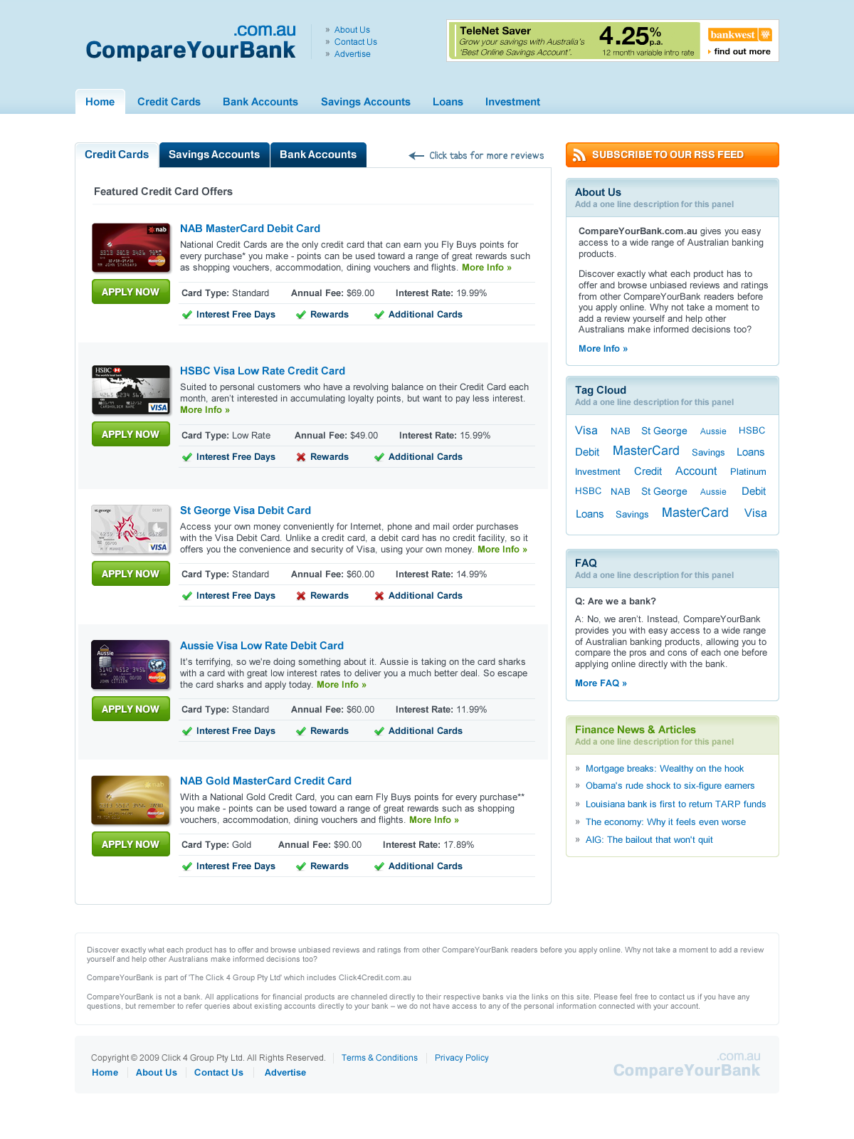 We are redeveloping our Australian finance comparison site compareyourbank.com.au (for next few days you may see old colour scheme - ignore that, see the link below or attachment for new colour scheme) and you can see the development site which is getting close to